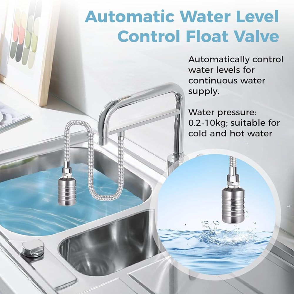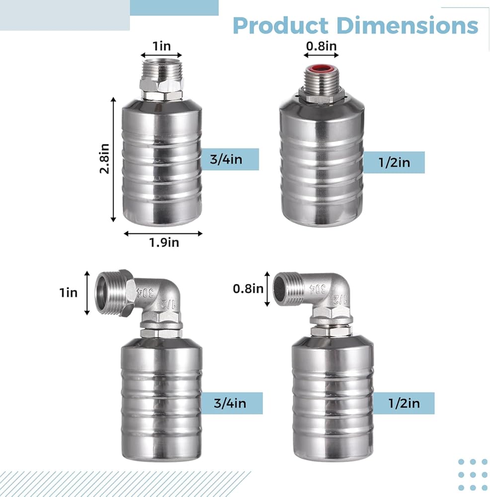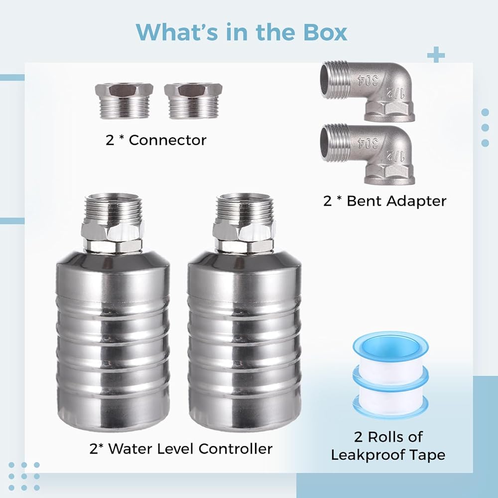 2 قطعة صمامات تعويم، 1/2 بوصة إلى 3/4 بوصة صمام تعويم أوتوماتيكي بالكامل لخزان المياه، 304 صمام تعويم للتحكم في مستوى المياه من الفولاذ المقاوم للصدأ لخزانات المياه والمطابخ وأبراج المياه وحمامات السباحة وأحواض الماشية