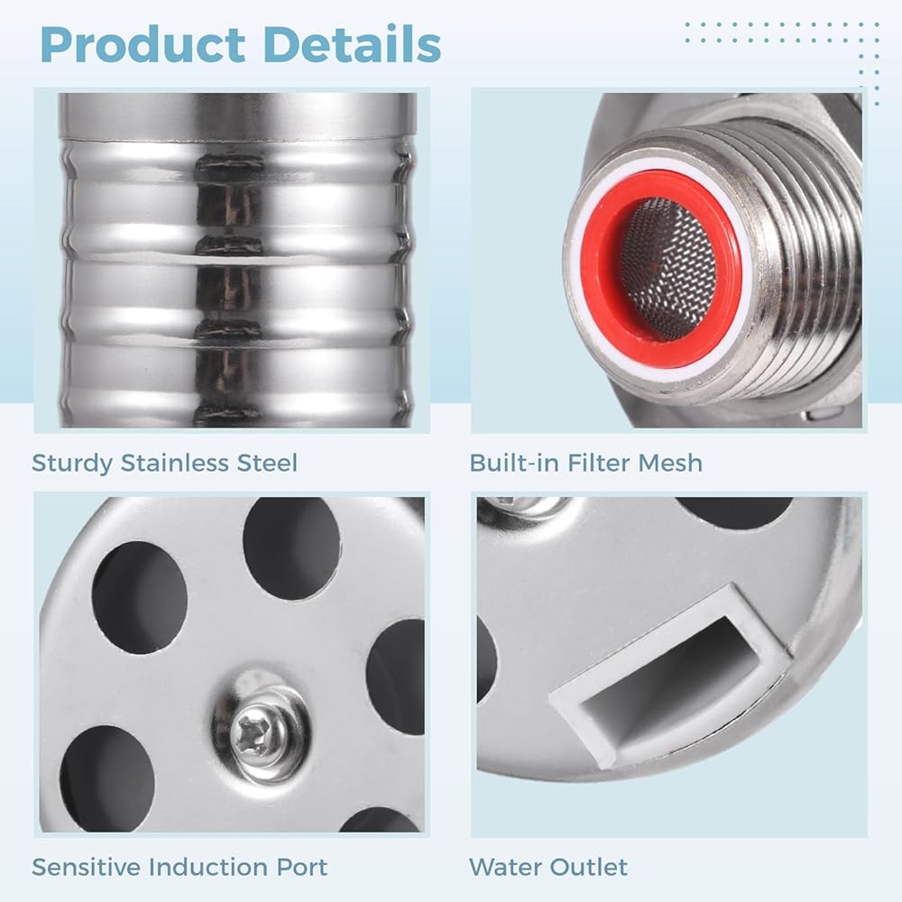 • تركيب بسيط ومريح: مع موصل ومحول منحني وشريط مانع للتسرب، يصبح التثبيت سهلاً. هناك 4 طرق توصيل (كما هو موضح في الصورة، 1/2 بوصة و3/4 بوصة) إجمالاً لتلبية احتياجات التثبيت المختلفة. بالإضافة إلى ذلك، يتميز هذا الصمام العائم بمجموعة سهلة الاستخدام تتضمن مرشحًا مدمجًا لمنع انسداد الرمال