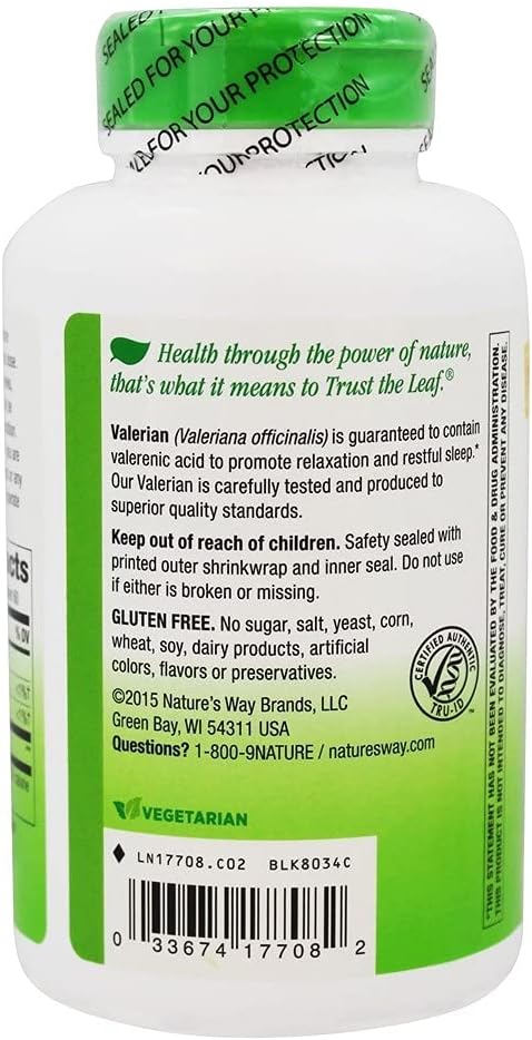 Premium Herbal Restful Sleep Certified 530 Mg Dietary Supplement Health & Longevity Through The Healing Power Of Nature-That's What It Means To Trust The Leaf. Valerian (Valeriana Officinalis) Has A Relaxing Effect On The Nervous System, Promotes Relaxation In Individuals Leading A Hectic Lifestyle, And Helps Support Restful Sleep Contain 0.1% Valerenic Acids. Our Valerian Is Carefully Grown, Tested And Produced To Certified Quality Standards.