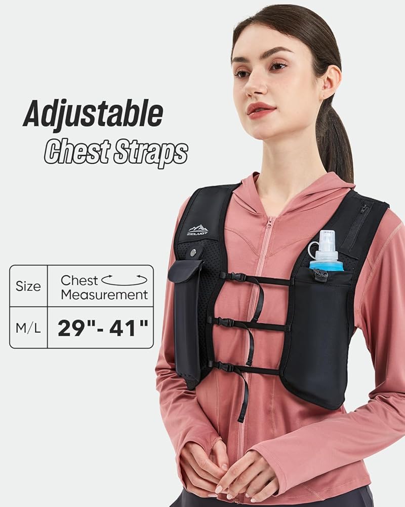 أحزمة صدر قابلة للتعديل - حقيبة ظهر للجري من زيلفوت بتصميم للجنسين و3 أحزمة صدر قابلة للتعديل، تتيح لك تحقيق ملاءمة مريحة ومريحة أثناء الجري. تم تصميم طبيعته القابلة للتعديل لتقليل الارتداد والتحول، مما يمنع أي احتكاك بسبب الملاءمة غير المتطابقة. نطاق تعديل الصدر لسترة الجري هذه للنساء والرجال: 29 بوصة - 41 بوصة.