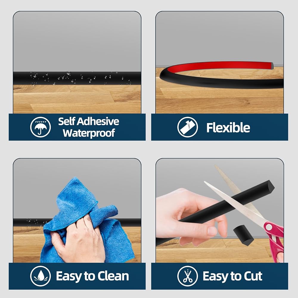 متعددة الاستخدامات ومتعددة الأغراض: يمكن قصها وتشكيلها بسهولة لتناسب احتياجاتك، وهي مثالية لتخصيص أي مساحة. مثالية لملء الفجوات بين الأبواب، وعتبات النوافذ، والمواقد، وأسطح العمل، وأحواض الاستحمام والجدران. يمكن تطبيقه على حوض الاستحمام وحوض المطبخ والمرحاض والمكتب والمزيد.