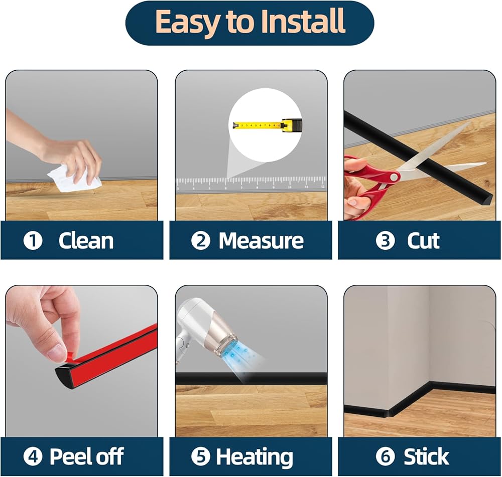 سهل الاستخدام وسريع التركيب: لا حاجة إلى براغي أو حفر. ما عليك سوى قياس القالب ربع الدائري وقصه وقشره ولصقه. للحصول على أفضل رابط، قم بتنظيف السطح وتسخين اللاصق باستخدام مجفف الشعر قبل الاستخدام. أضف الغراء على طول الحواف لمزيد من القوة.
