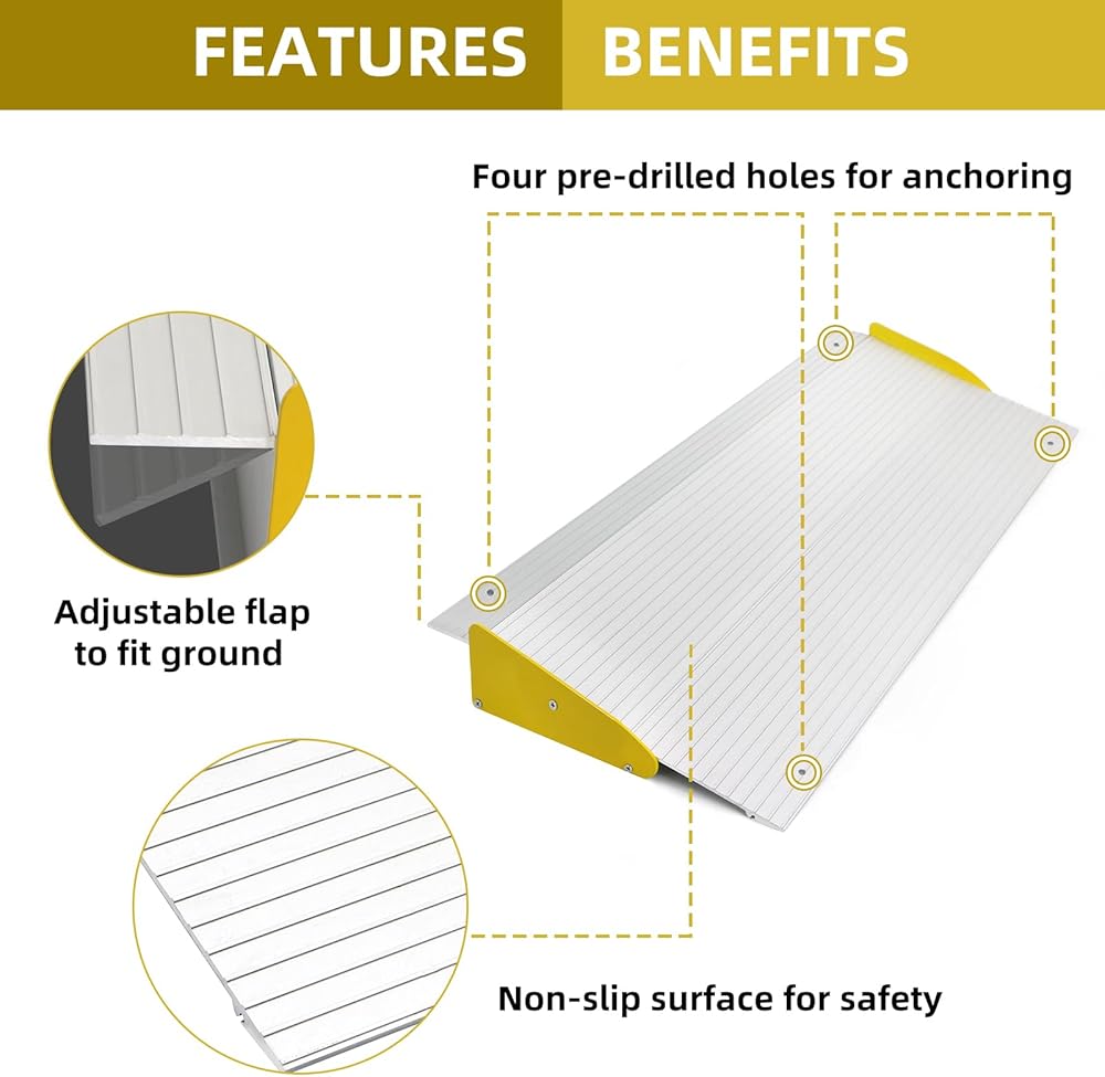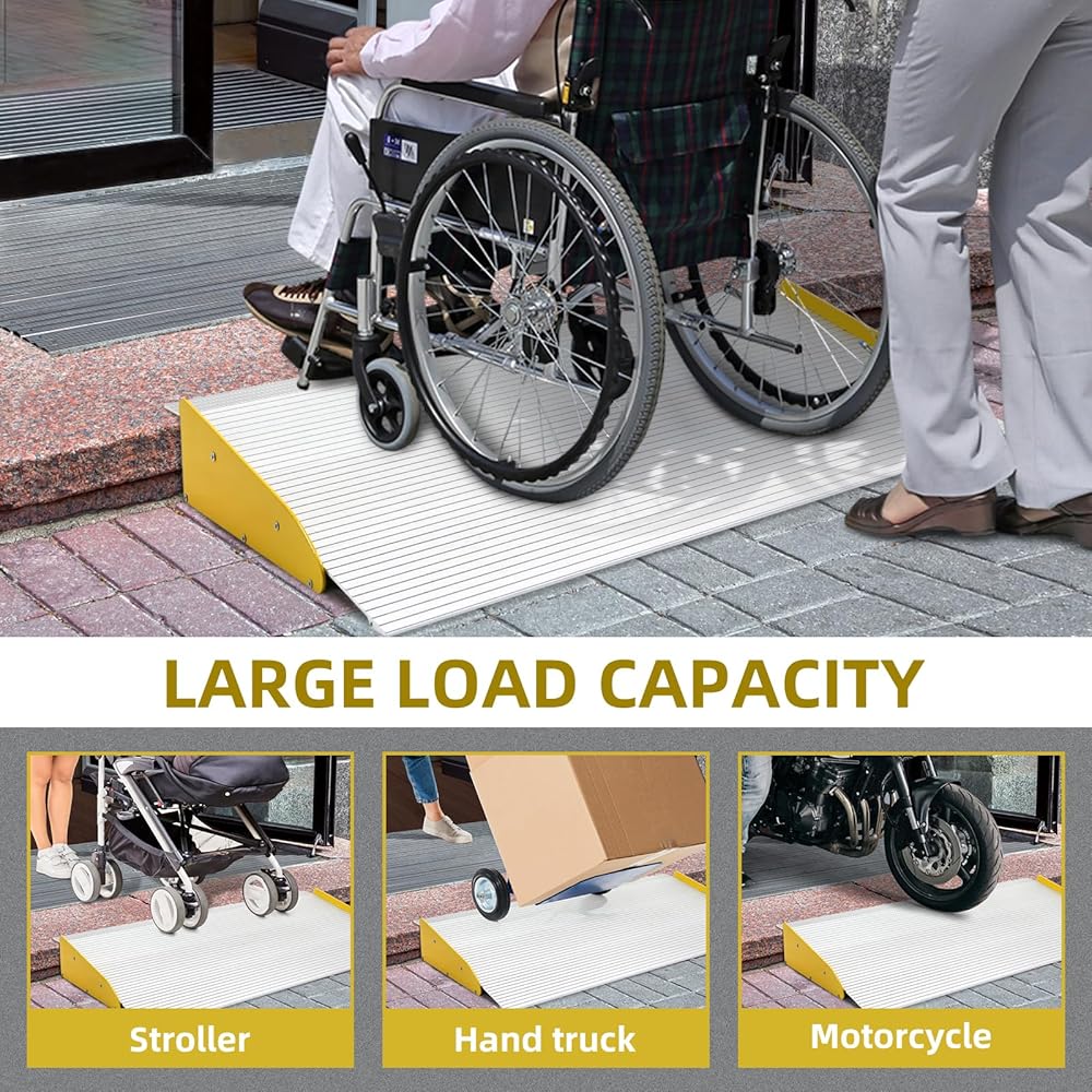 • سعة التحميل: تدعم ما يصل إلى 880 رطلاً. رائعة لمرور الكراسي المتحركة والدراجات البخارية والمشايات والعصا.