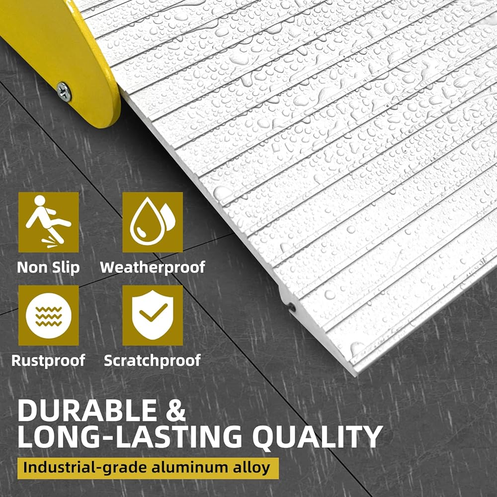 منحدر دخول للمدخل مع سطح غير قابل للانزلاق، منحدر عتبة من الألومنيوم بارتفاع 2 بوصة للكراسي المتحركة والدراجات البخارية والكراسي الكهربائية وسعة تحميل 880 رطل