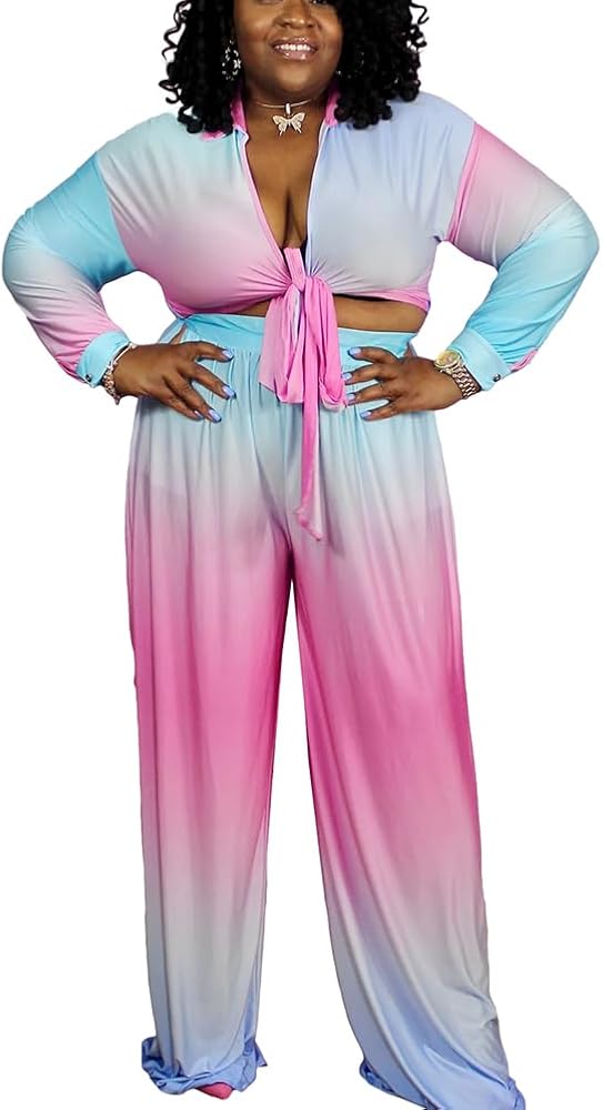 FEATURE: Floral print 2 piece outfits pants sets for women, Tie knot batwing blouses crop top & wide leg pants, Beach cover up set, Unique floral printed, Sexy v neck crop top and elastic waist longpant clubwear.