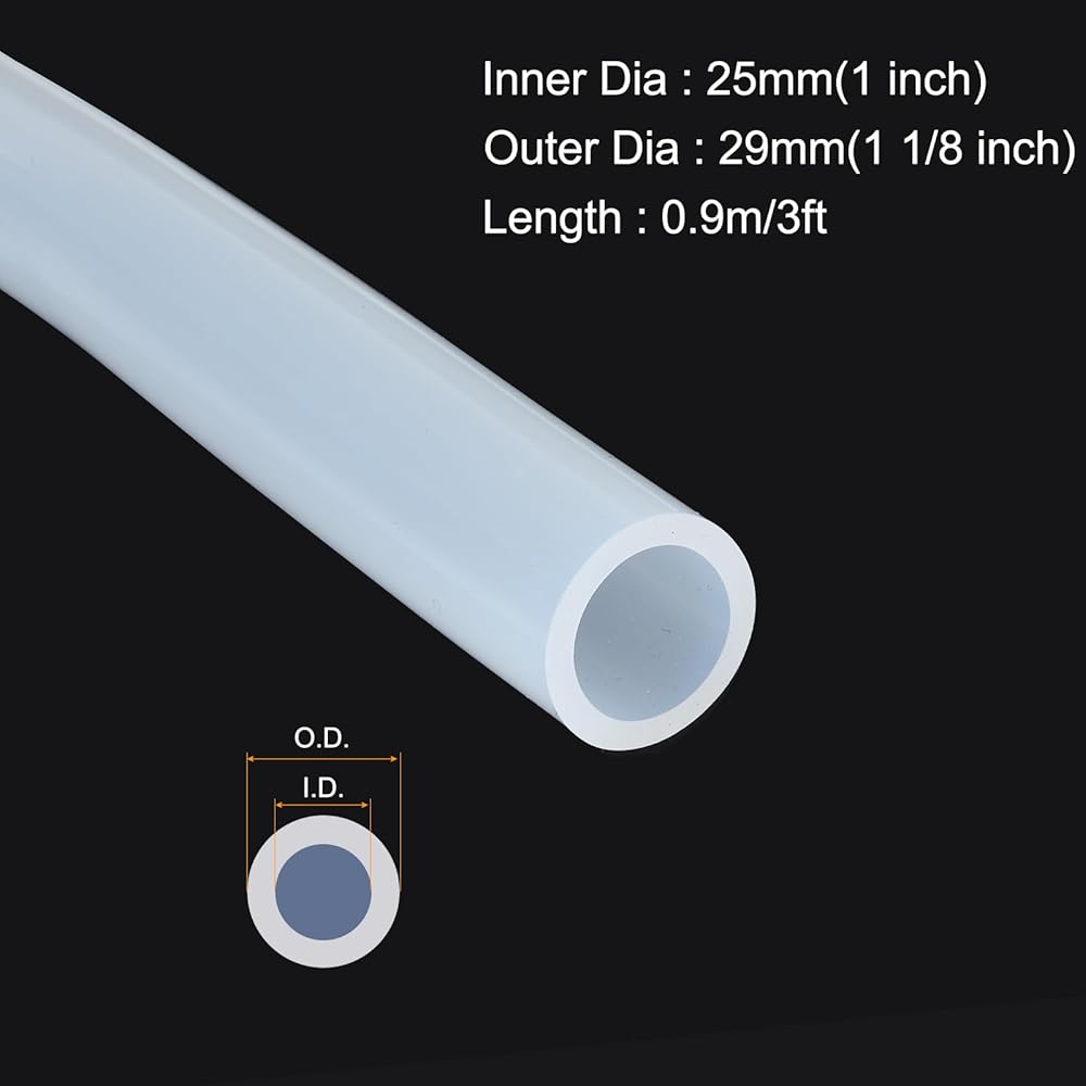 • أنابيب السيليكون، بحجم: 25 مم (1 بوصة) القطر الداخلي، 29 مم (1 1/8 بوصة) القطر الخارجي، الطول الإجمالي 0.9 م/3 قدم