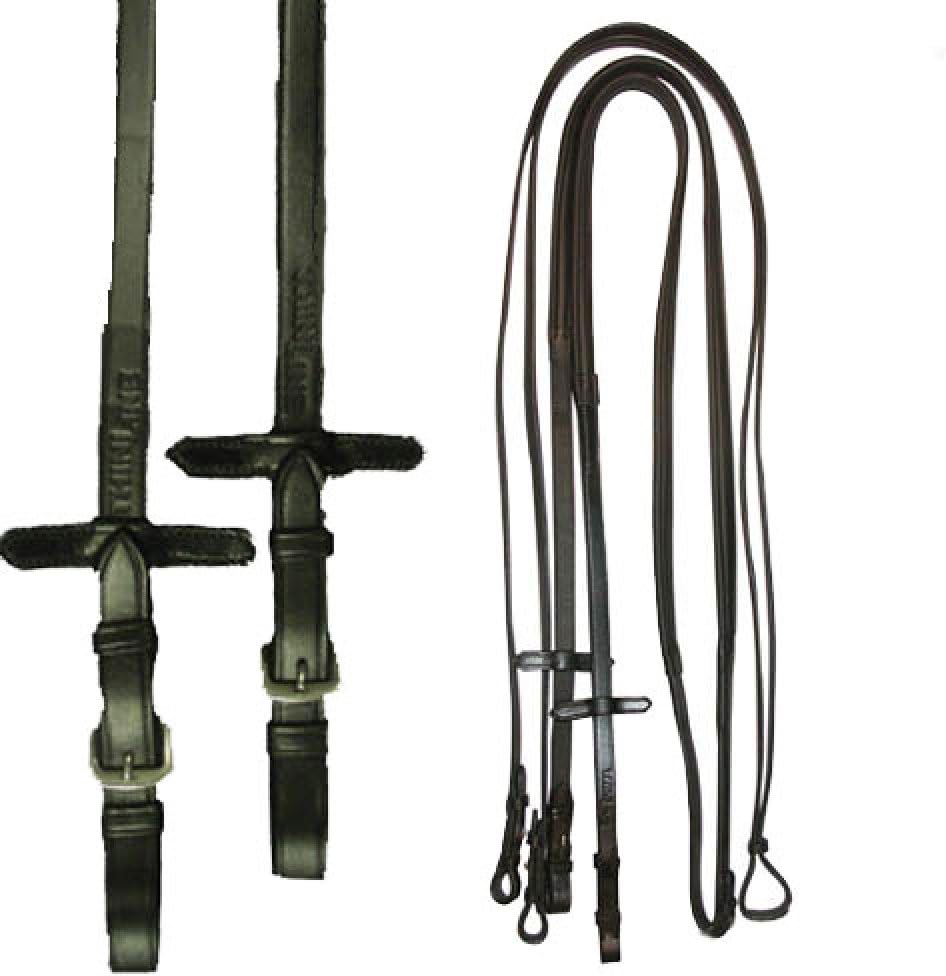 ThinLine Reins ThinLine Reins offer superior and comfort for any rider in need of a great pair of reins. No rubber breakdown after just a few months of riding. These reins will mold to your hand and do not slip when they get wet. Real luxury for your hands. Choose Hook stud or buckle end. Color: Black or Brown Size: 54 or 60 (add $3.60) Choice: Hook Stud or Buckle.