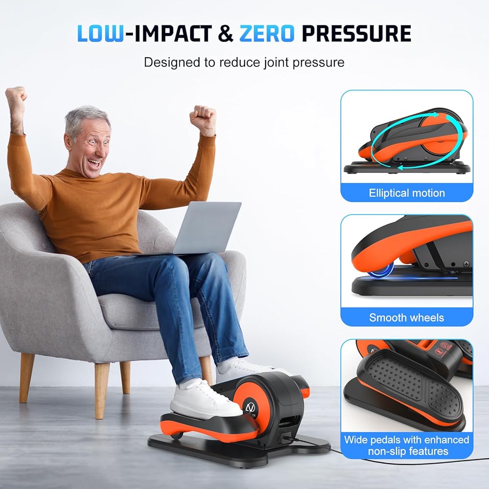• Compact and Portable with Fully Assembled: This electric foot pedal exercise machine is designed compact and portable, measuring just 17*15*9IN and weighing only 12LB, making it easy for seniors to move. And this elliptical stepper comes fully assembled and ready to use straight out of the box. Ideal for home, office, or any setting, it allows for convenient, anytime exercise
