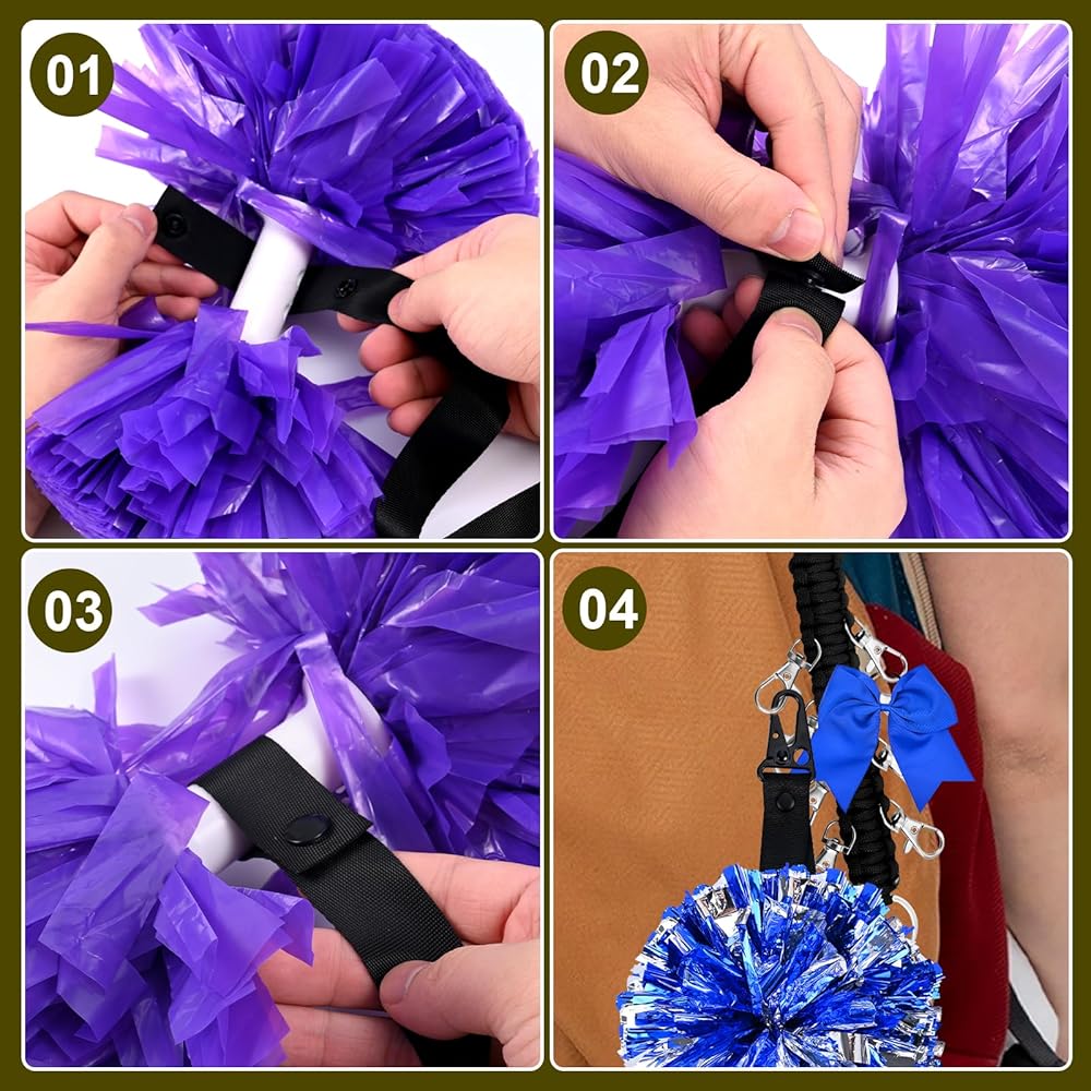 Strong Portability: The pom pom holder can easily fix bows and cheerleading pom-poms on backpacks, making it convenient to carry during daily training and competitions. Not only is it functional, it can also serve as a decoration to add a sense of fashion, complementing the overall cheerleading equipment