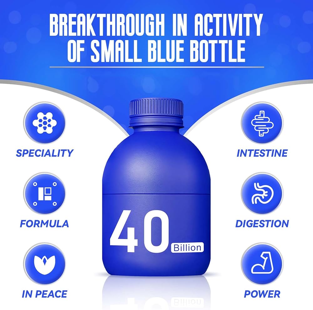 تعزيز صحة الجهاز الهضمي: تم تصميم البروبيوتيك Little Blue Bottle الخاص بنا خصيصًا لتعزيز إدارة الوزن وانتظامه بشكل أفضل. مع مزيج قوي من البروبيوتيك الخام، والبريبايوتكس العضوي، والإنزيمات الهاضمة، فإنه يساعد على تنظيم الجهاز الهضمي ويدعم نباتات الأمعاء المتوازنة لتحقيق صحة الجهاز الهضمي المثالية. قل وداعاً للانتفاخ والإمساك!