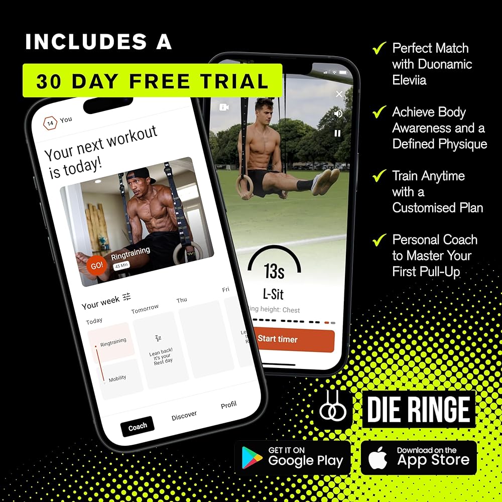تتضمن مجموعة تمارين السحب المكونة من 9 قطع ما يلي: نظام تمارين السحب Duonamic Eleviia، 2x حلقات خشبية، 2x أشرطة Duonamic مع حلقة تثبيت سريعة ووصلة مثلثة، 2x حبال مرفقة Eleviia، وحقيبة سفر.