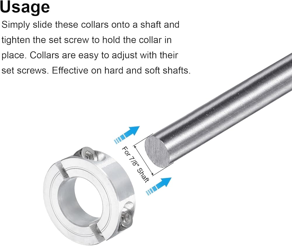 Easy Installation: Split collars can be quickly installed or removed by opening the collar and placing it around the shaft, then tightening the screws to secure it in place. Split collars, in particular, have a two-piece design with a gap, making them convenient to install or remove.