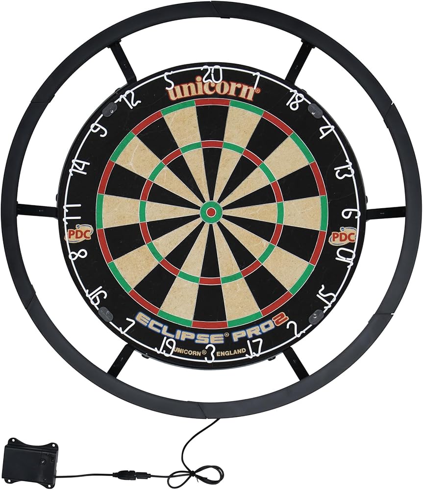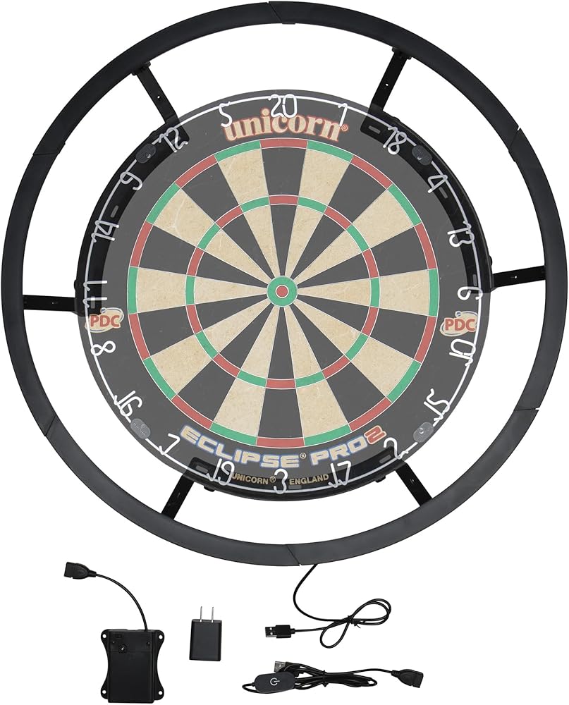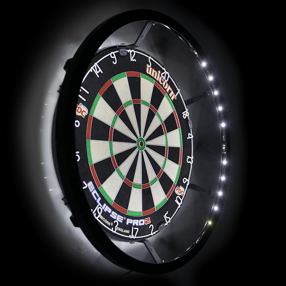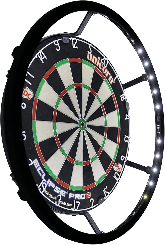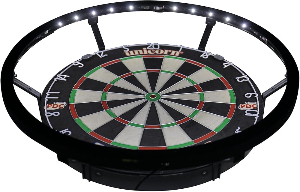 Experience tournament-style gameplay with dedicated dartboard lighting, ensuring optimal visibility and ambiance for your matches. With 360 degrees of bright LED lighting, shadows are eliminated, providing consistent illumination across the dartboard surface. Designed to accommodate traditional 18" bristle dartboards, this lighting system maintains official size standards for competitive play. Enjoy hassle-free assembly, as the components easily attach together in minutes, allowing you to focus on the game rather than setup logistics. With this lighting solution, you can create the perfect darting environment in your home or venue, enhancing the overall experience for players and spectators alike.