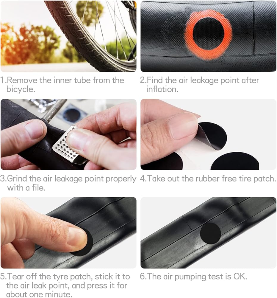 • 2.Fast and safe:If you are riding in the wild and the tire is broken, these 12 patches can help you quickly repair the tires, just like the operation in the picture. . When you are riding on mountain roads or highways, there is a tire leak. He will definitely help you solve this problem easily and make outdoor riding happily and happily.