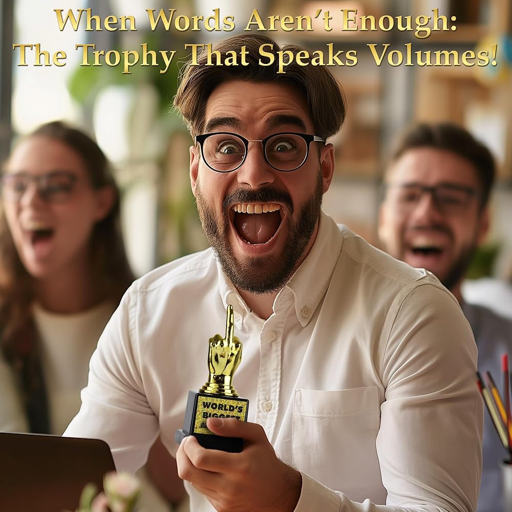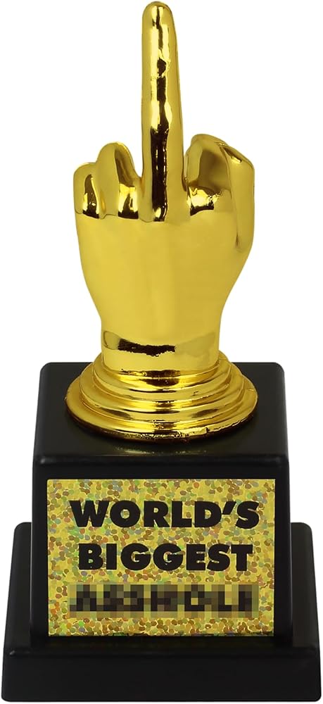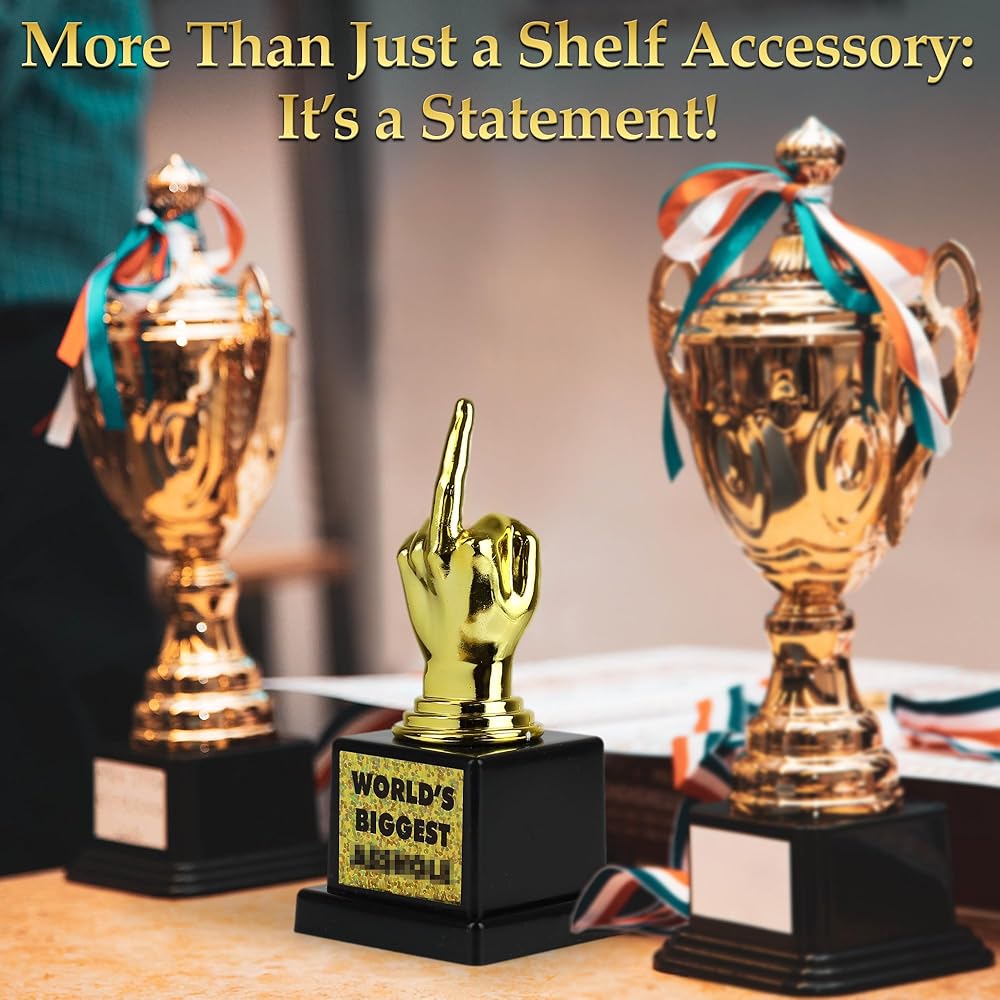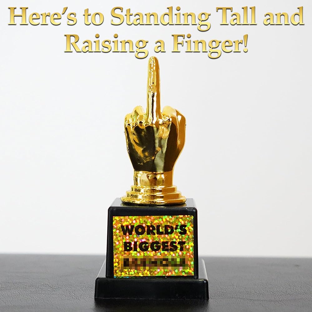 تصميم مليء بالفكاهة: إن كأس الإصبع الأوسط الرسمية الخاصة بنا هي الهدية المثالية، ومن المؤكد أنها ستثير الضحك وستصبح القطعة المركزية الثمينة لأي مجموعة من جوائز الكمامة. ارفع مستوى المتعة في أي تجمع من خلال الحصول على جائزة تمثل بداية محادثة مضمونة وعلامة إنجاز فكاهية للفائزين والمشاركين على حدٍ سواء.