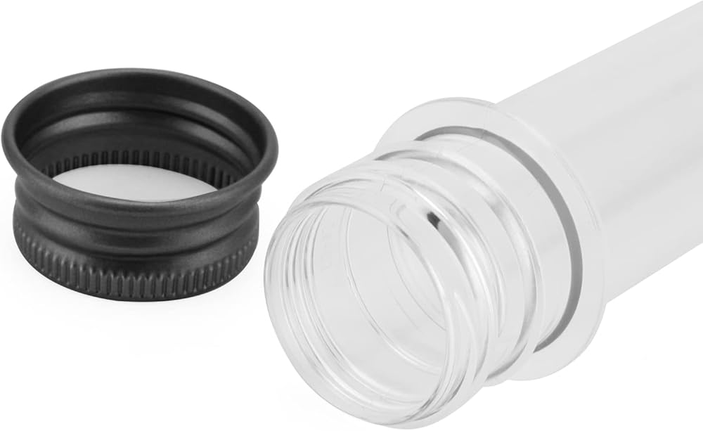 المواد - جسم زجاجة أنبوب الاختبار الخاص بنا مصنوع من البلاستيك وغطاء الزجاجة مصنوع من الألومنيوم. بالمقارنة مع زجاجة أنبوب الاختبار الزجاجية، فإن زجاجة أنبوب الاختبار البلاستيكية لدينا أكثر مقاومة للسقوط والتآكل.