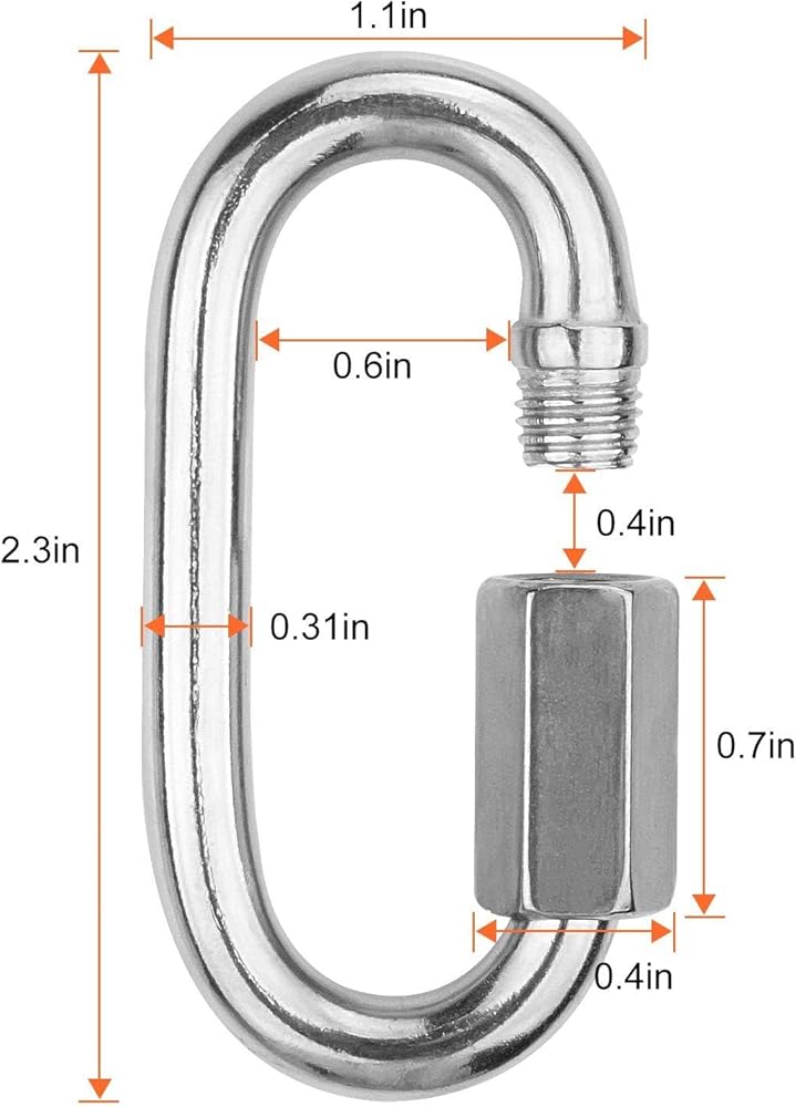 15 قطعة حلقة تسلق للخدمة الشاقة M6 من الفولاذ المقاوم للصدأ سلسلة ربط قوية 1/4 وصلة سريعة سلسلة ربط برغي حلقة تسلق معدنية من الزنك حلقة تسلق بيضاوية كبيرة للأرجوحة والأرجوحة وحقيبة الظهر
