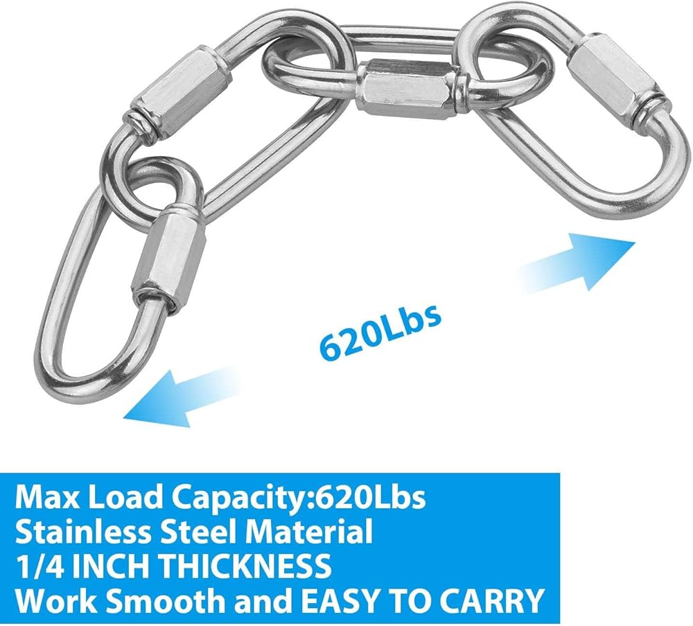 - High Strength with 620lbs Work Load: With the high strength steel construction, 1/4” quick link has a working load of 620 pounds, intended for all kinds of connecting uses.