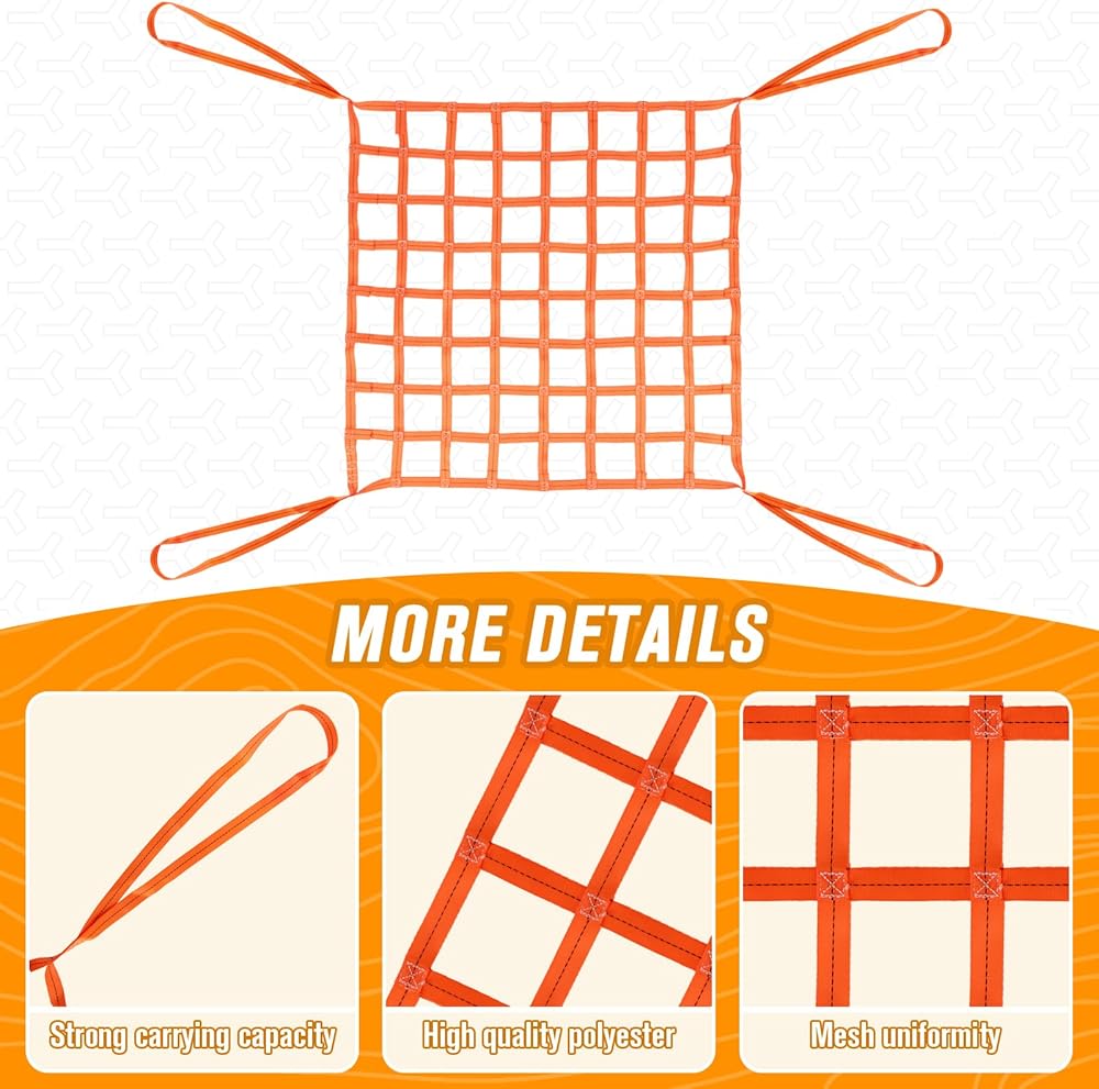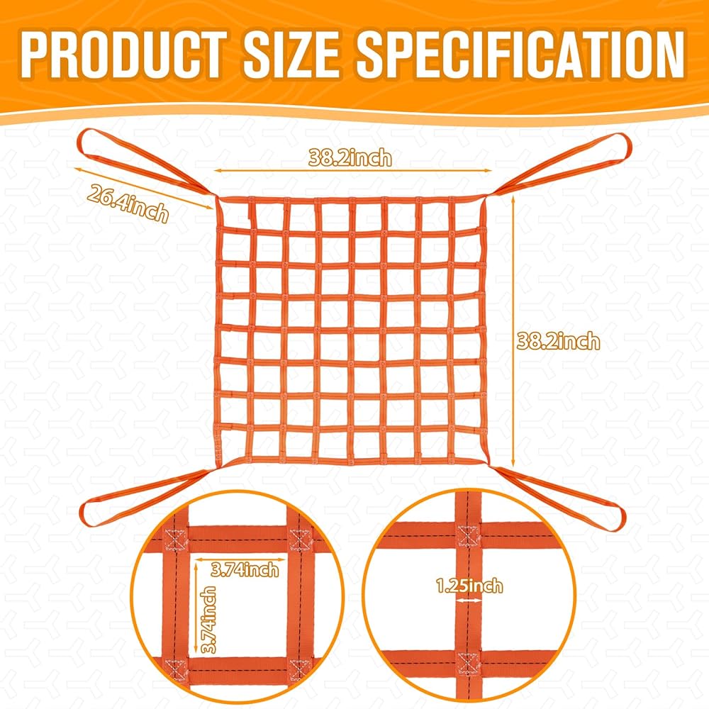 معلومات المقاس: يبلغ مقاس الشبكة بالكامل 3.28 × 3.28 قدم، مع حجم شبكي فردي 3.94 × 3.94 بوصة (داخلي). يبلغ طول الحبال 2.3 قدم، وتتمتع الشبكة بسعة تحميل قصوى تصل إلى 661 رطلاً، مما يجعلها مناسبة للتعامل بأمان مع مجموعة متنوعة من البضائع.