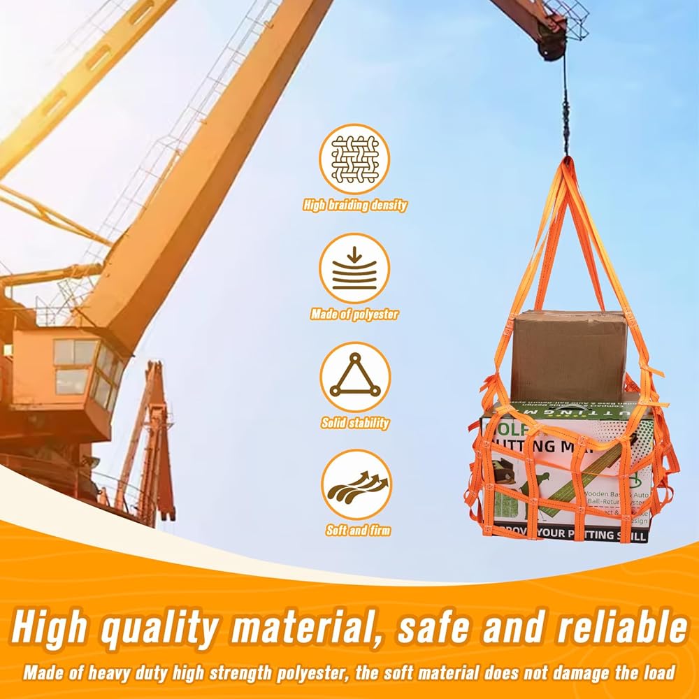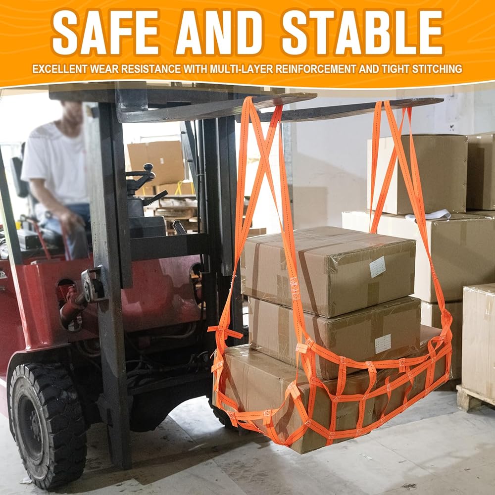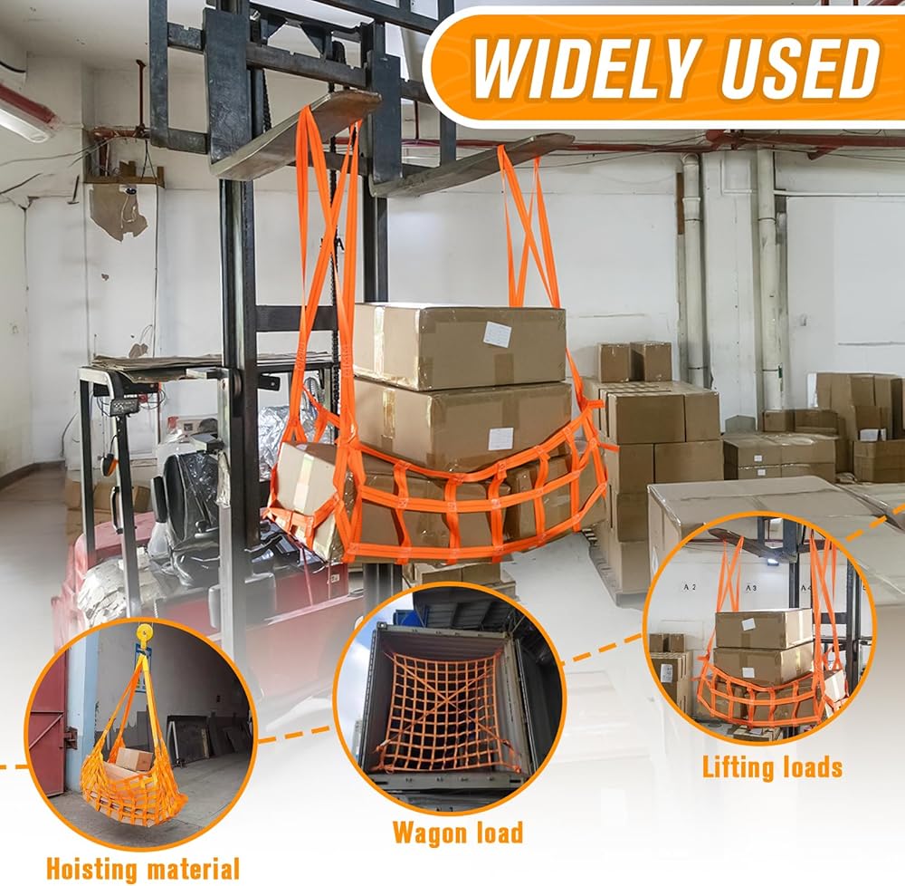 سهلة الاستخدام: تتميز شبكة الرفع في كل زاوية بحزام بطول 2.3 قدم، مما يلغي الحاجة إلى أشرطة أو ملحقات إضافية. يعمل هذا التصميم على تبسيط عملية رفع ونقل البضائع، خاصة تلك ذات الأشكال والمواد الفريدة، مما يعزز كفاءة التحميل والتفريغ
