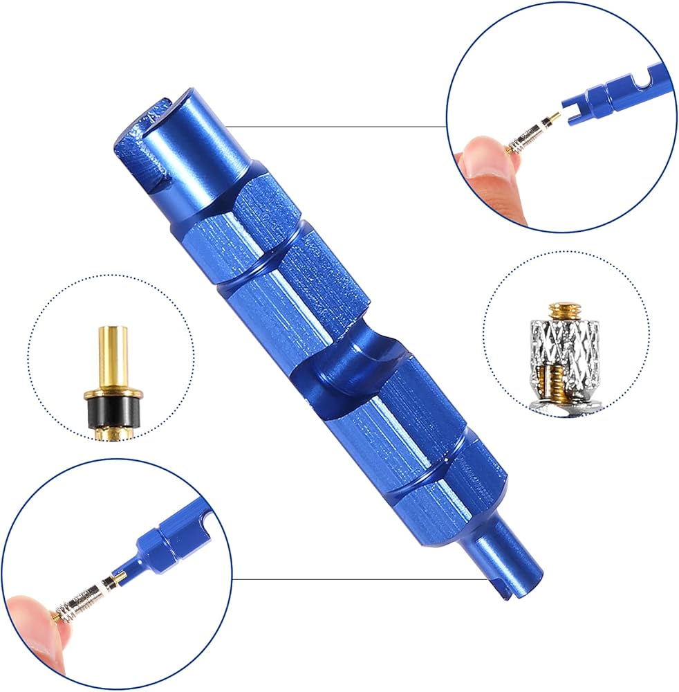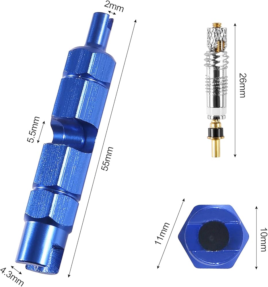 • Wide Application: The blue bicycle valve core remover is compatible with cars, trucks, motorcycles, bicycles, tractors, ATV and other vehicles for Presta or for Schrader valve core, which does not work on valves without removable cores, so please confirm the type of your valve before buying.
