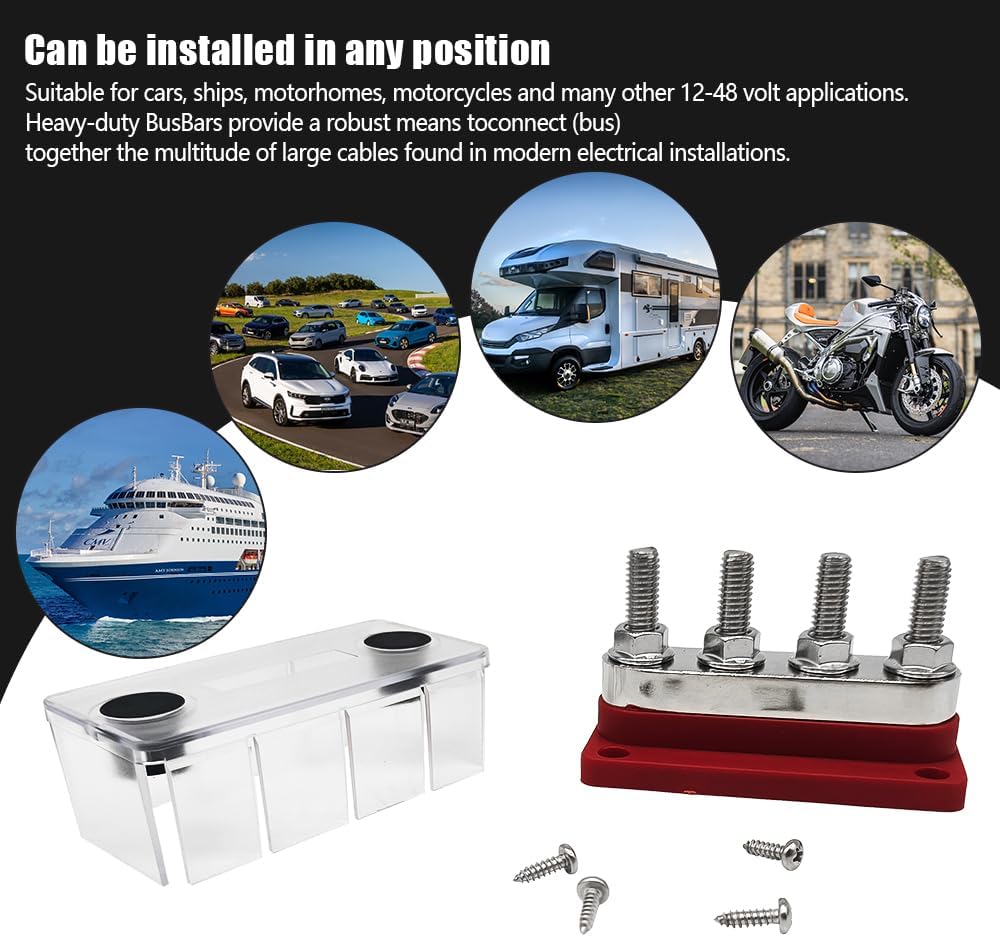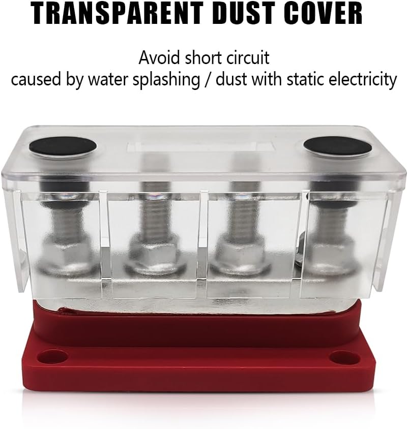 Safe Bus Bar Terminal Block: The battery distribution block is made of tinned copper with good electrical conductivity, non-rusting and corrosion resistant. Flame retardant polycarbonate base, flame retardant and safer