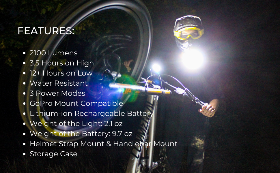 طقم إضاءة خوذة الدراجة الجبلية Voyager مع بطارية قابلة لإعادة الشحن، متوافقة مع حوامل GoPro، 2100 لومن، 3 ساعات على شعاع عالٍ