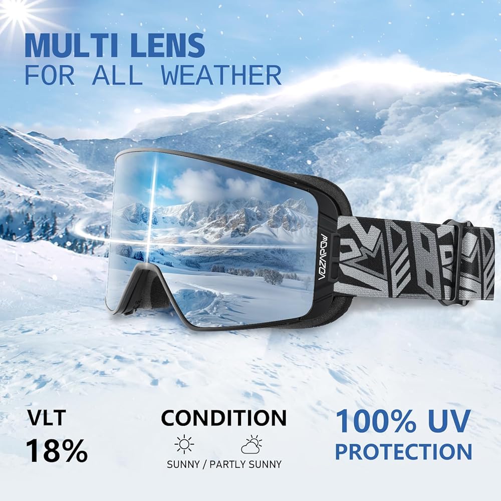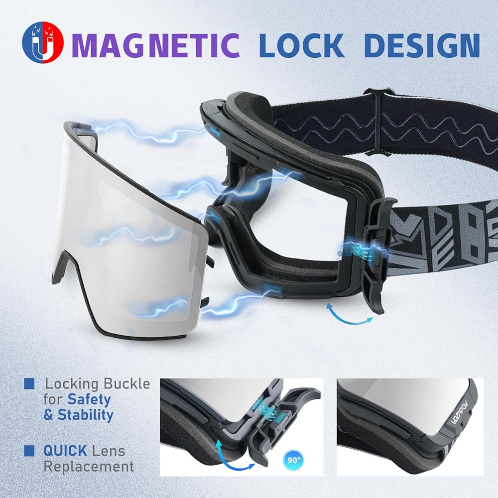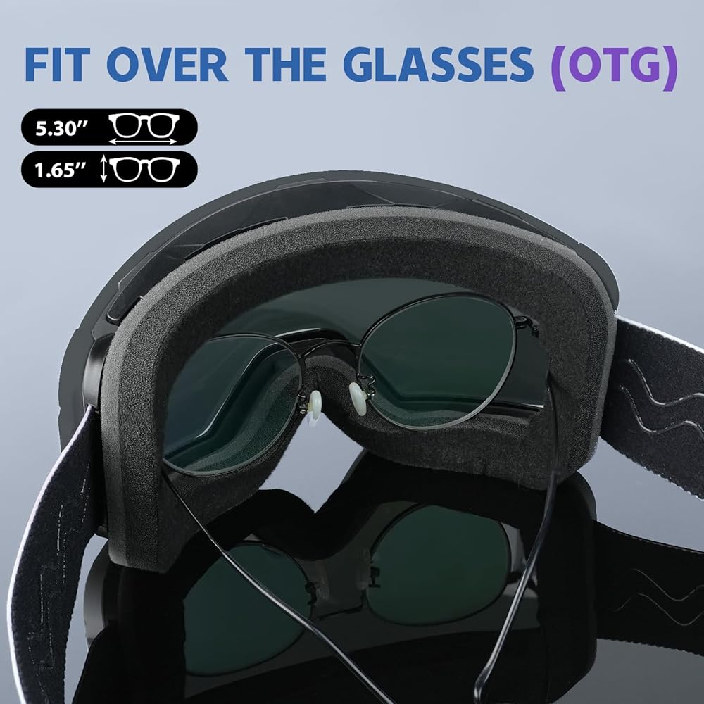 【تصميم OTG】يسمح تصميم OTG (فوق النظارات) لمرتدي النظارات بالاستمتاع بسهولة بمتعة التزلج. لقد صممنا بعناية حزامًا مرنًا قابلًا للتعديل وغير قابل للانزلاق، وهو ليس مناسبًا لخوذات التزلج المختلفة فحسب، بل يضمن أيضًا ارتداء النظارات بقوة أثناء التزلج، مما يوفر حماية أمان شاملة لرحلة التزلج الخاصة بك. نظارات التزلج مصممة للرجال والنساء. إنه مثالي للتزلج والتزلج على الجليد والتزحلق على الجليد وركوب الدراجات النارية/ركوب الجبال والمزيد.