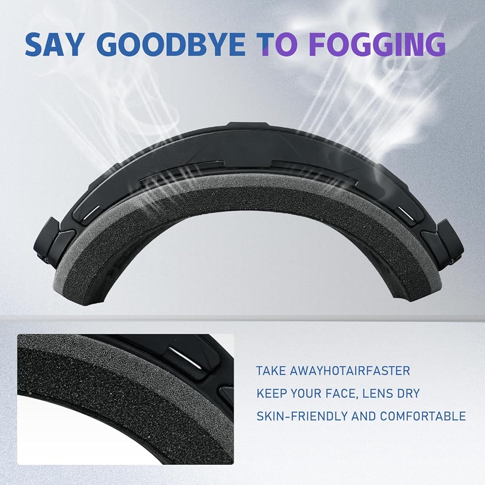 【راحة لا مثيل لها 】تدرك VOZAPOW أهمية الراحة، باستخدام إطارات TPU عالية الجودة ومتينة، ومجهزة بثلاث طبقات من الإسفنج الصديق للبشرة، والتي تناسب الوجوه المختلفة تمامًا، وتقلل بشكل فعال من الضباب، وتعزز الدورة الدموية في الهواء، وتحافظ على الوجه جافًا وجافًا. مريحة حتى عند ارتدائها لفترة طويلة.