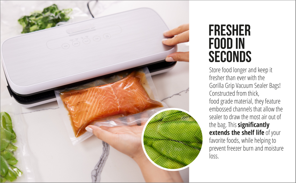 أكياس مانعة للتسرب محكمة الغلق من غوريلا جريب، عبوتان، 11 بوصة × 25 قدم، 6x طعام طازج، حزمة توفير للوجبات، مانعة للتسرب، مقاومة للثقب، تمنع حرق الفريزر، من أجل فيديو سوس، آمن للاستخدام في الميكروويف وغسالة الأطباق