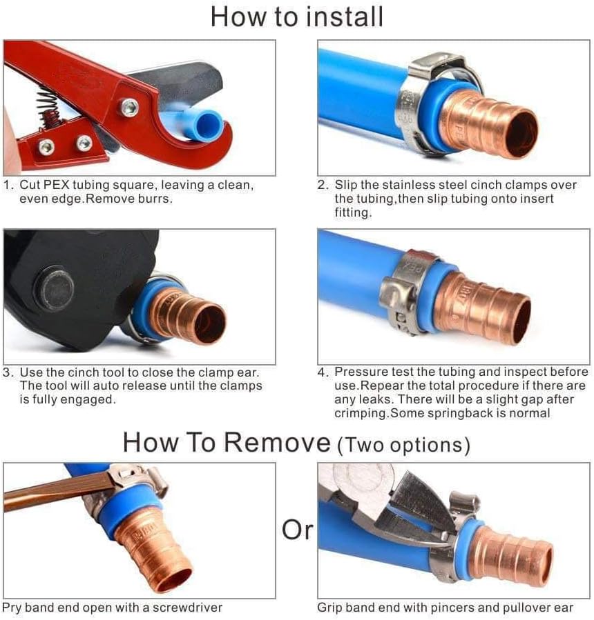 هذه المشابك هي تصميم خاص لجميع تركيبات توصيل أنابيب PEX. عالمي يستخدم في أي علامة تجارية لتجهيزات أو أنابيب تجعيد PEX.