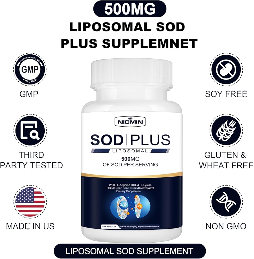 SOD ليبوسومال عالي الفعالية 500 مجم: مع تقنية الليبوزوم وأعلى 500 مجم من ديسموتاز الفائق أكسيد (SOD)، لا تتلامس مكملات ديسموتاز الفائق أكسيد لدينا بشكل مباشر مع حمض المعدة، مما يحسن التوافر البيولوجي بشكل كبير.