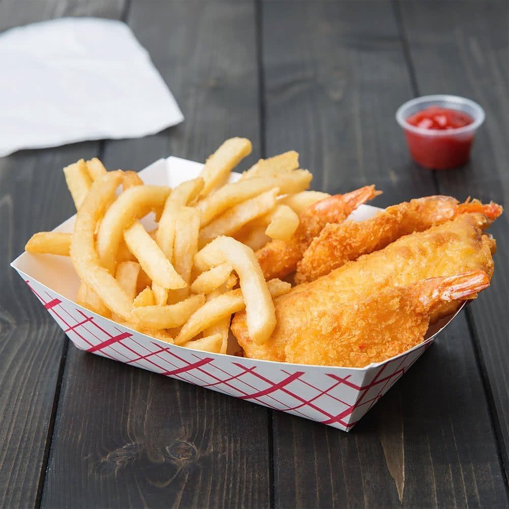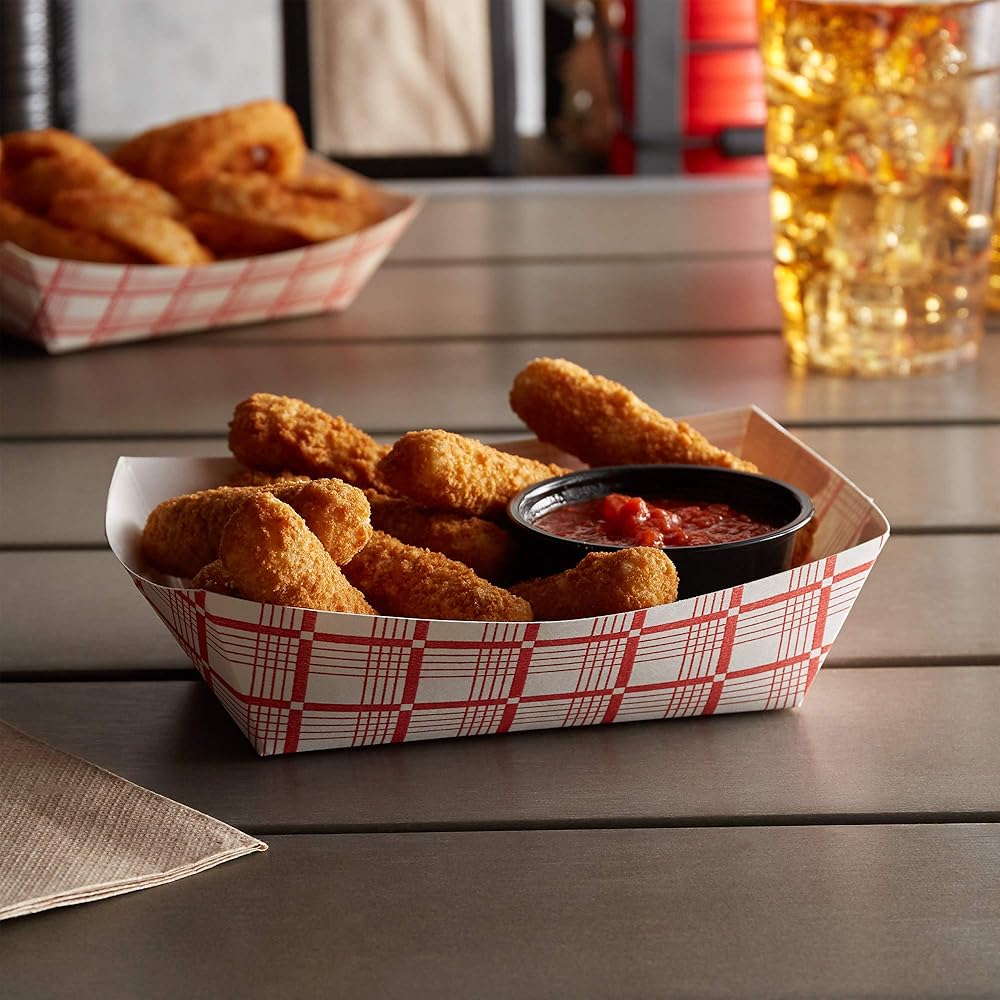 Perfect tray for serving all types of foods such as French fries, finger foods , fruits, cheeses , veggies, and all other on the go meals. Each package comes with 50 total paper checkered food tray . Great for schools, cafes, food trucks, and at home use . Grease-resistant barrier eliminates need for liners