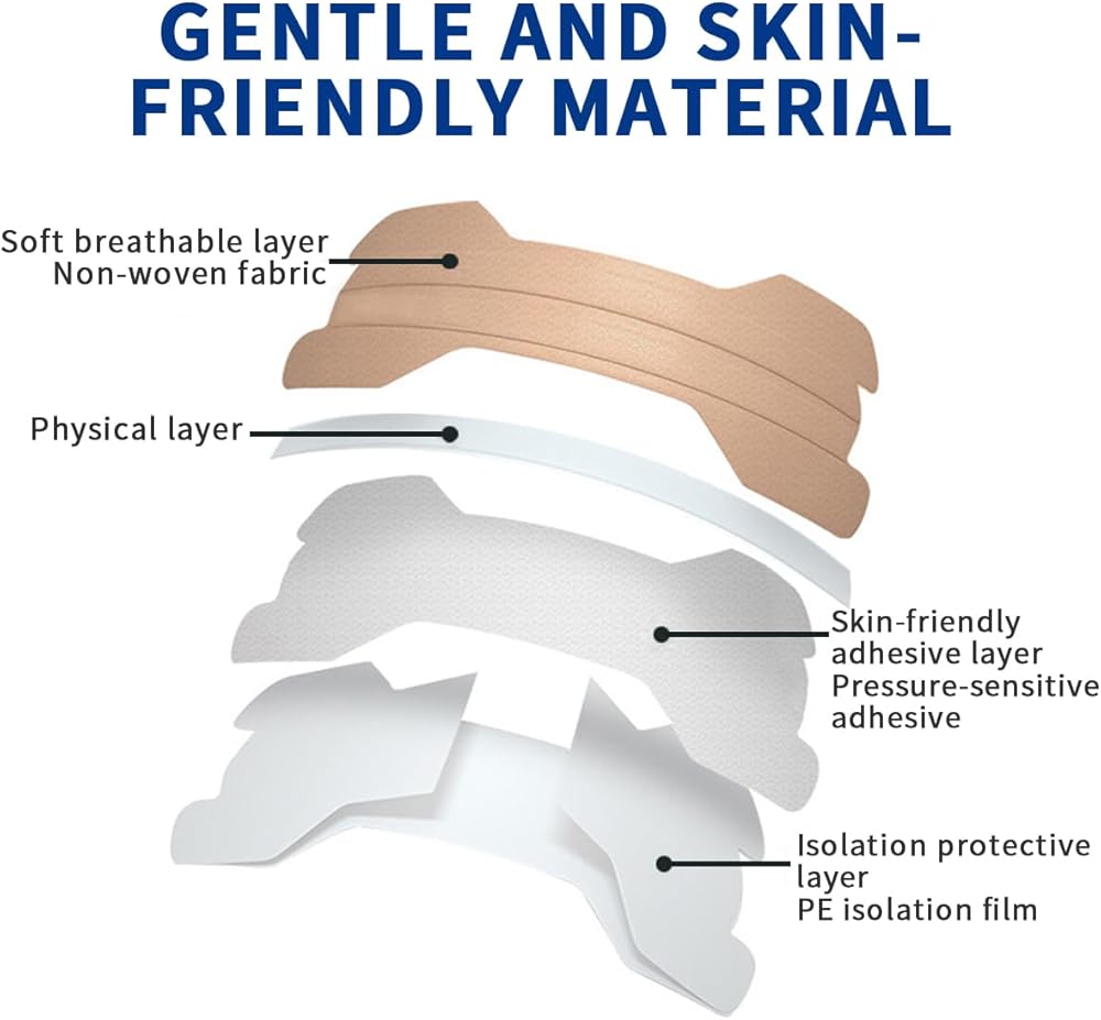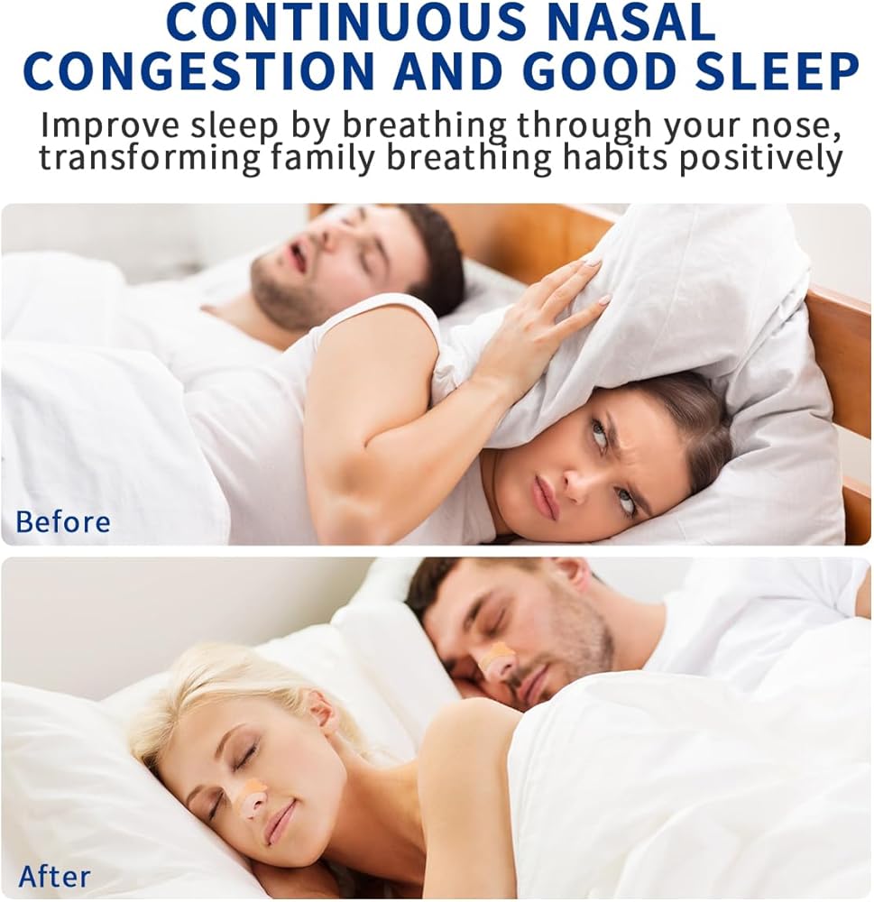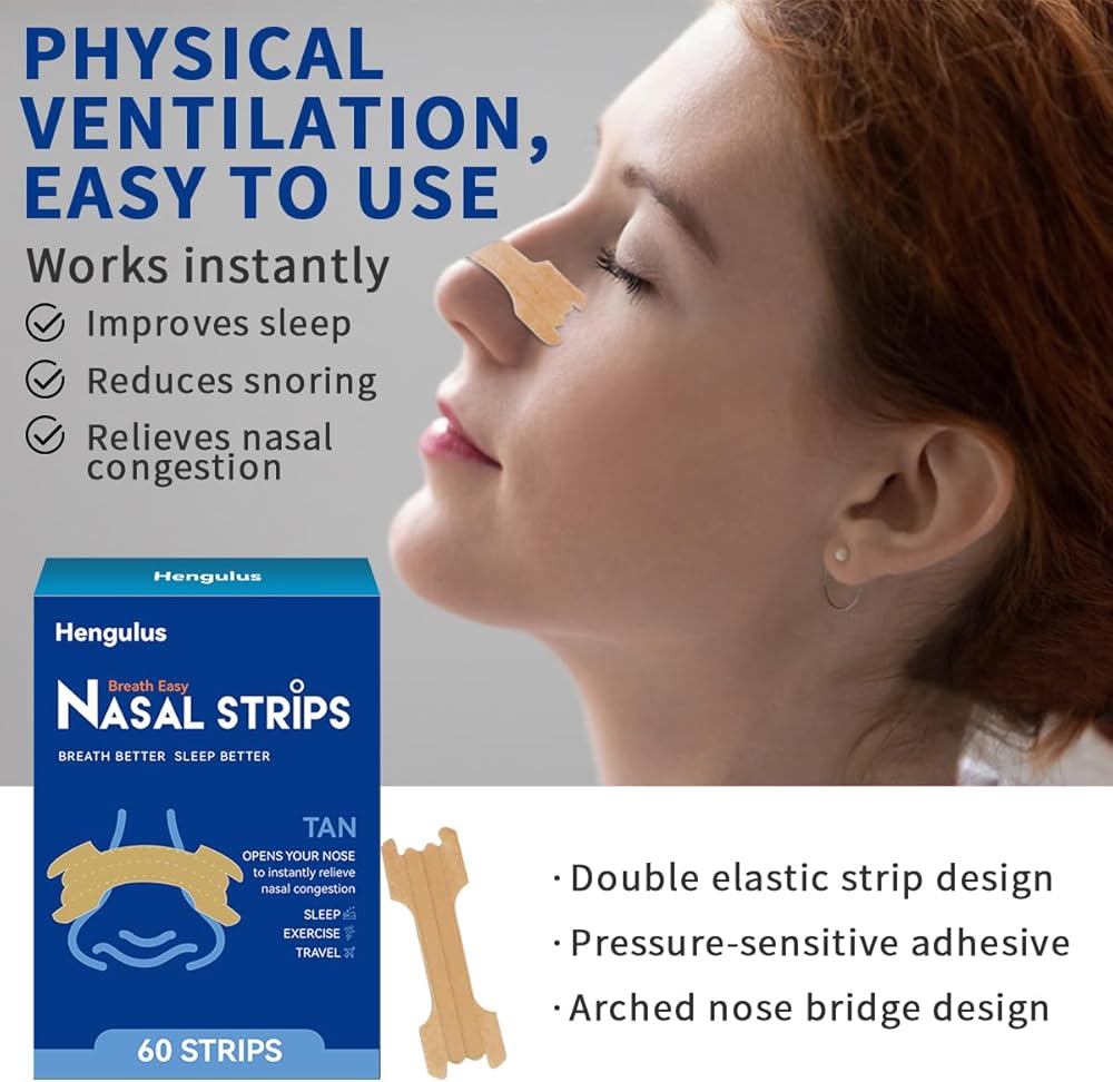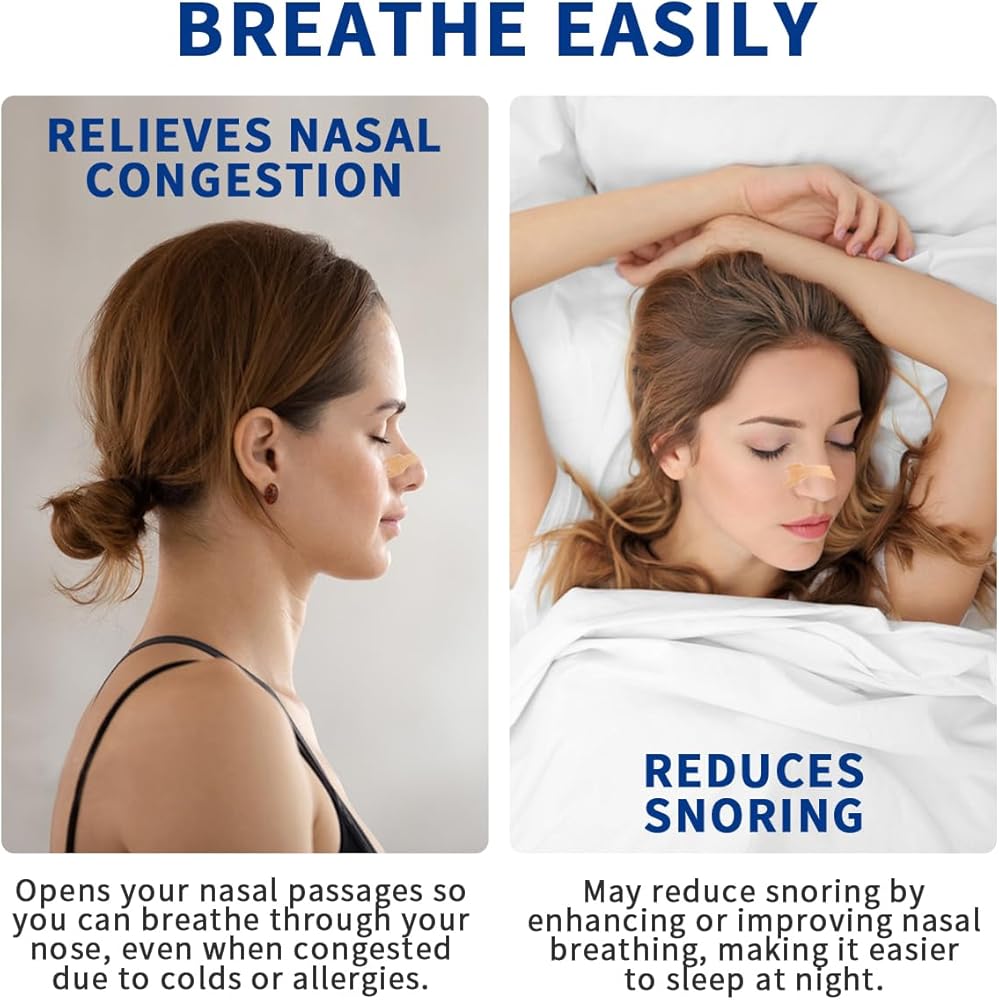 【Nasal Strips for Snoring】Nasal Strips can Instantly opens nasal passageways to improve airflow, making it easier to breathe, reduce snoring while sleeping, and relieve nasal congestion caused on by the common cold or allergies. Each box contains 60pcs nasal strips.