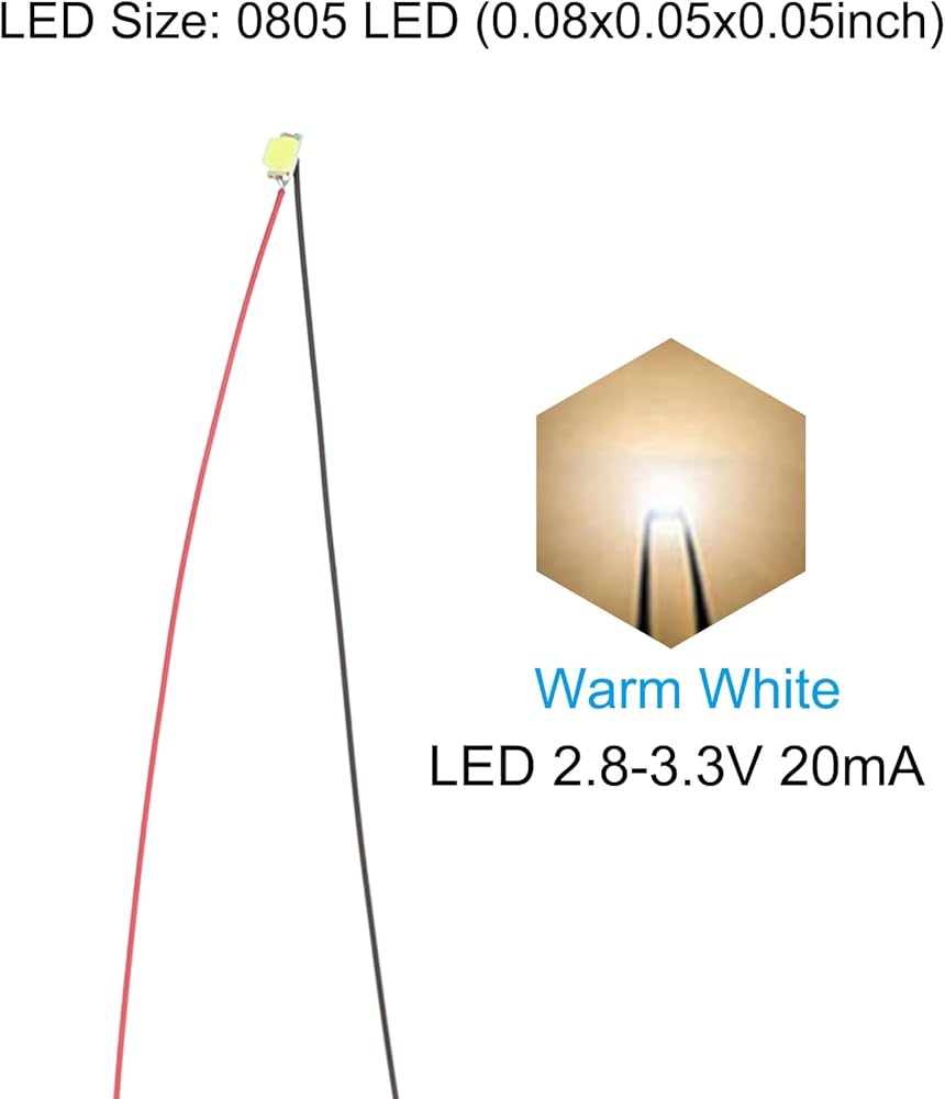 The pre wired micro led is highly suitable for beginner model building. Widely used in making small models, DIY lighting projects, etc. Suitable for RC cars, boats, helicopters, robots, headlights, scientific projects, Christmas tree, wedding, parties decorations, etc.