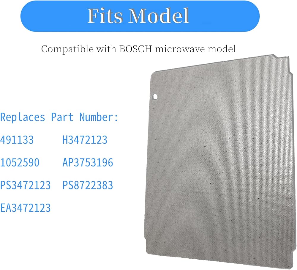 - Parts number: 00491133 for Bosch microwave waveguide mica cover
