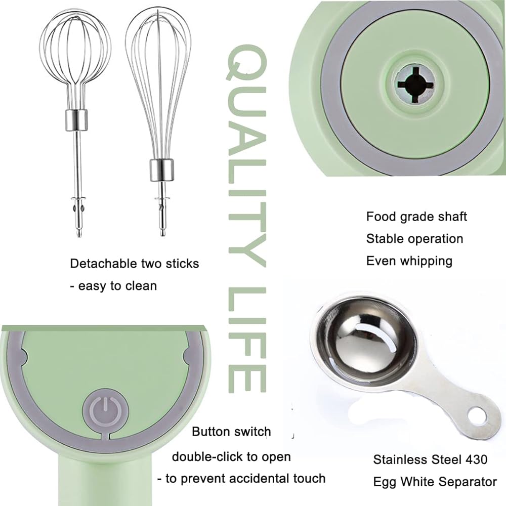 ♥ مزيج مزدوج من السوط وفاصل البيض - يحتوي هذا الخلاط الكهربائي اللاسلكي على مخفقتين سلكيتين قابلتين للاستبدال. اختر رأس الخفق الزنبركي لتحضير رغوة الحليب المثالية لقهوتك في الصباح وبعد الظهر. ويساعدك المخفق السلكي البالوني على خفق البيض والكريمة المخفوقة الرقيقة. يمكن لفاصل البيض المصنوع من الفولاذ المقاوم للصدأ أن يفصل بياض البيض بسهولة.