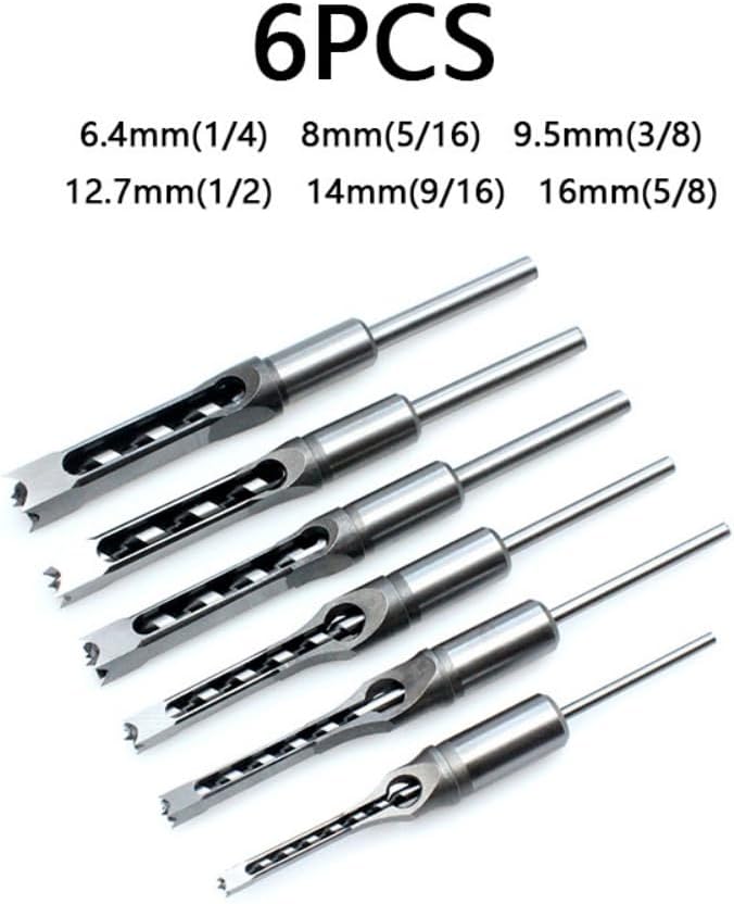 • 6-Pack Square Hole Mortise Chisel Drill Bit Tools: The following sizes are 1/4 Inch (6.4mm), 5/16 Inch (8mm), 3/8 Inch (9.5mm),1/2 Inch (12.7mm), 5/8 Inch (16mm), 9/16 Inch (14mm), you can tweak to fulfil your specific needs.