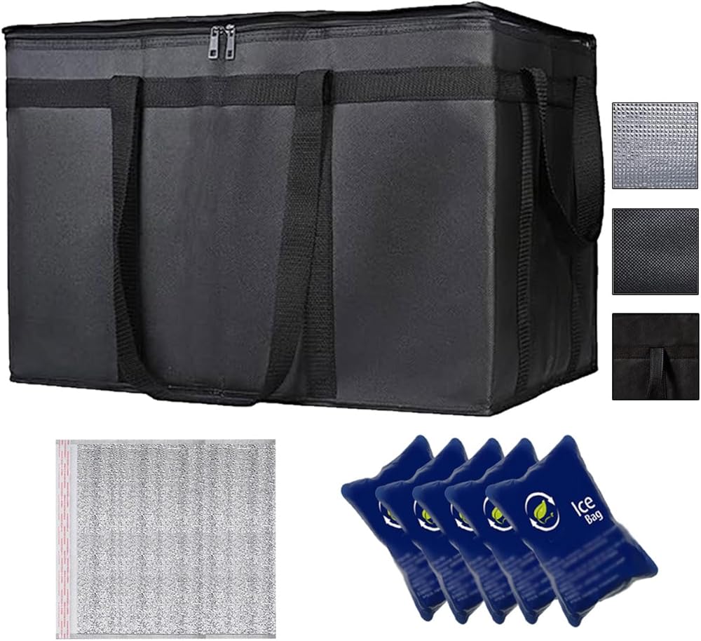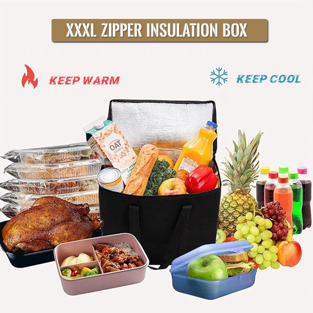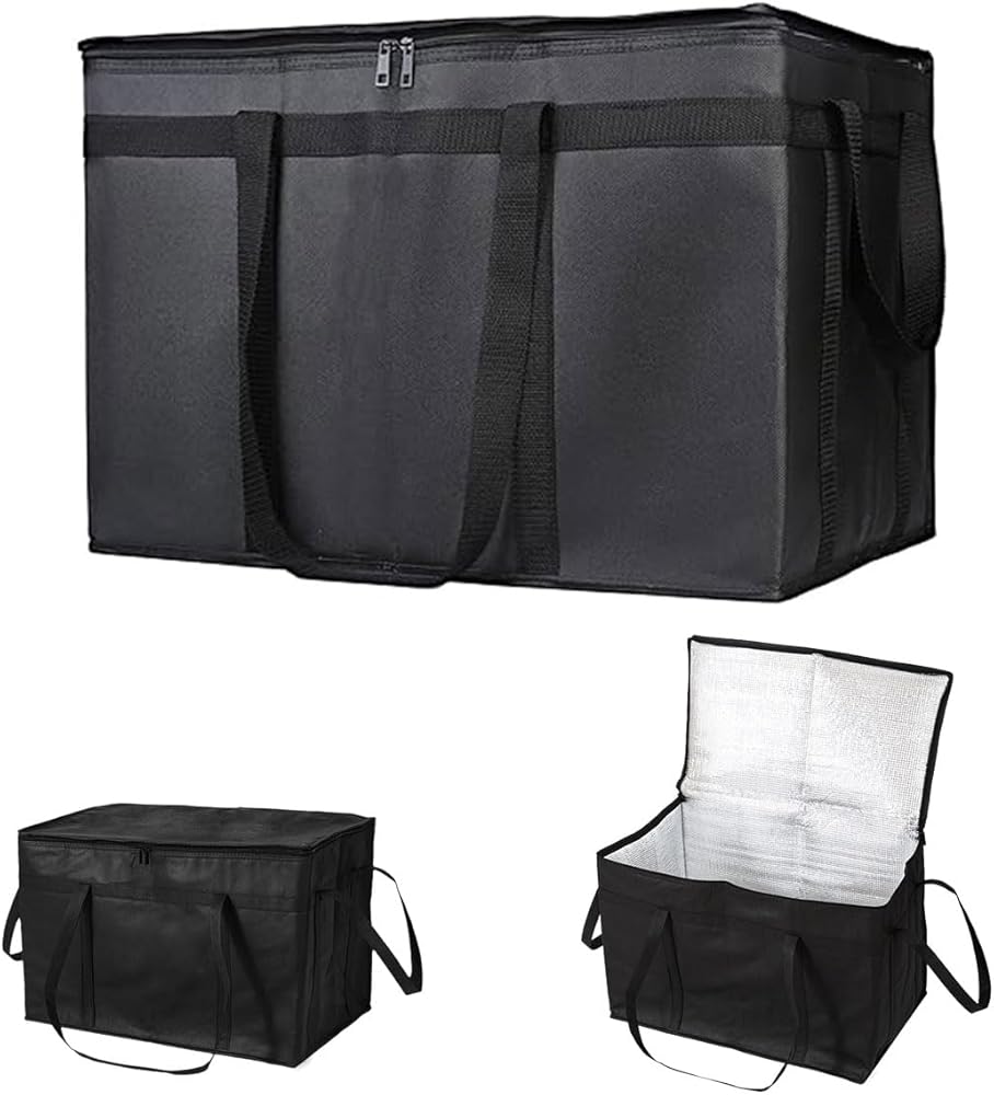 Collapsible:This thermal bag is reusable and portable. You can fold it up for storage when not in use to save space.Can be used for transporting groceries, catering, or as a cooler bag