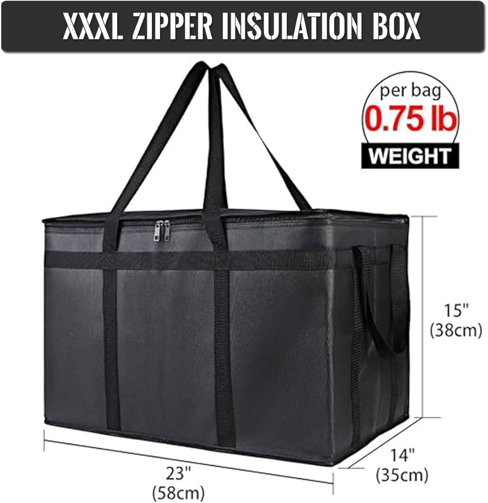 Insulated food delivery bag,Large Pizza bag,XXXL Insulated grocery bag,Cooler bag insulated and Food Warmer for Food Delivery & Grocery Shopping with Zippered Top,pizza delivery bag,Black