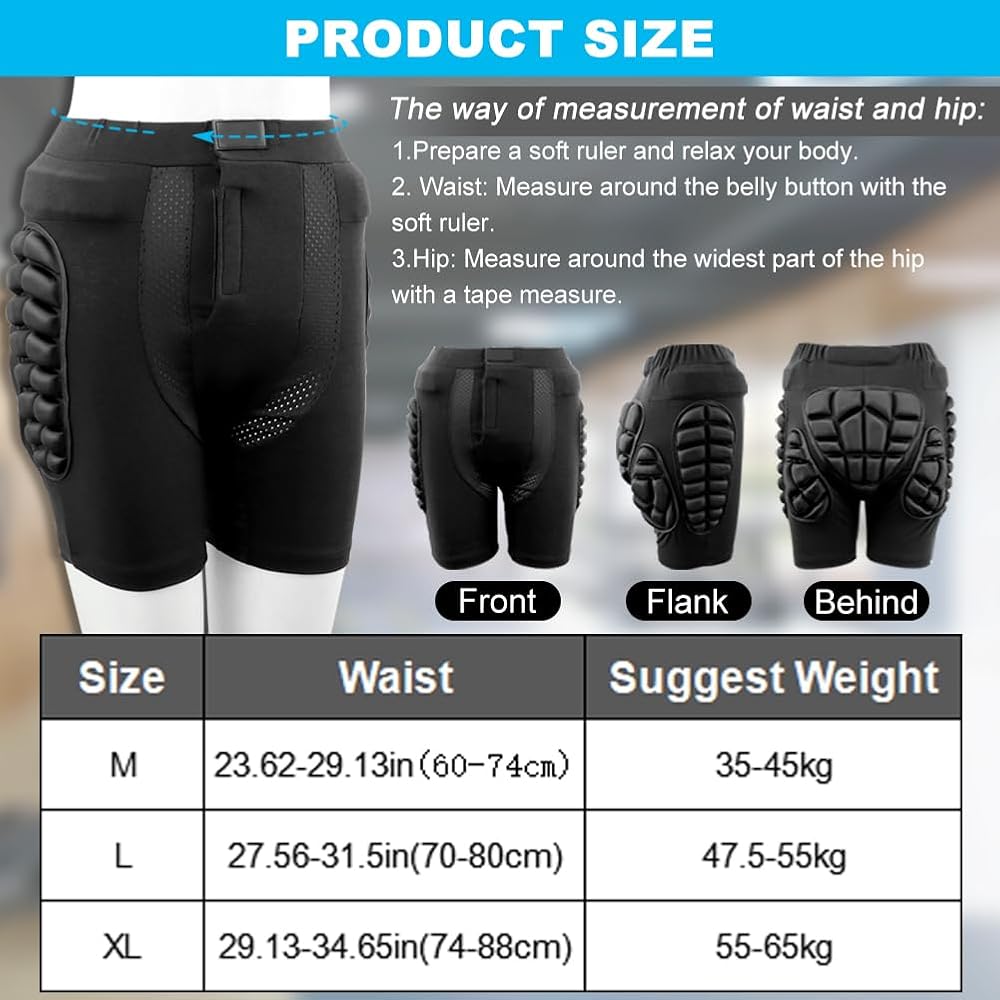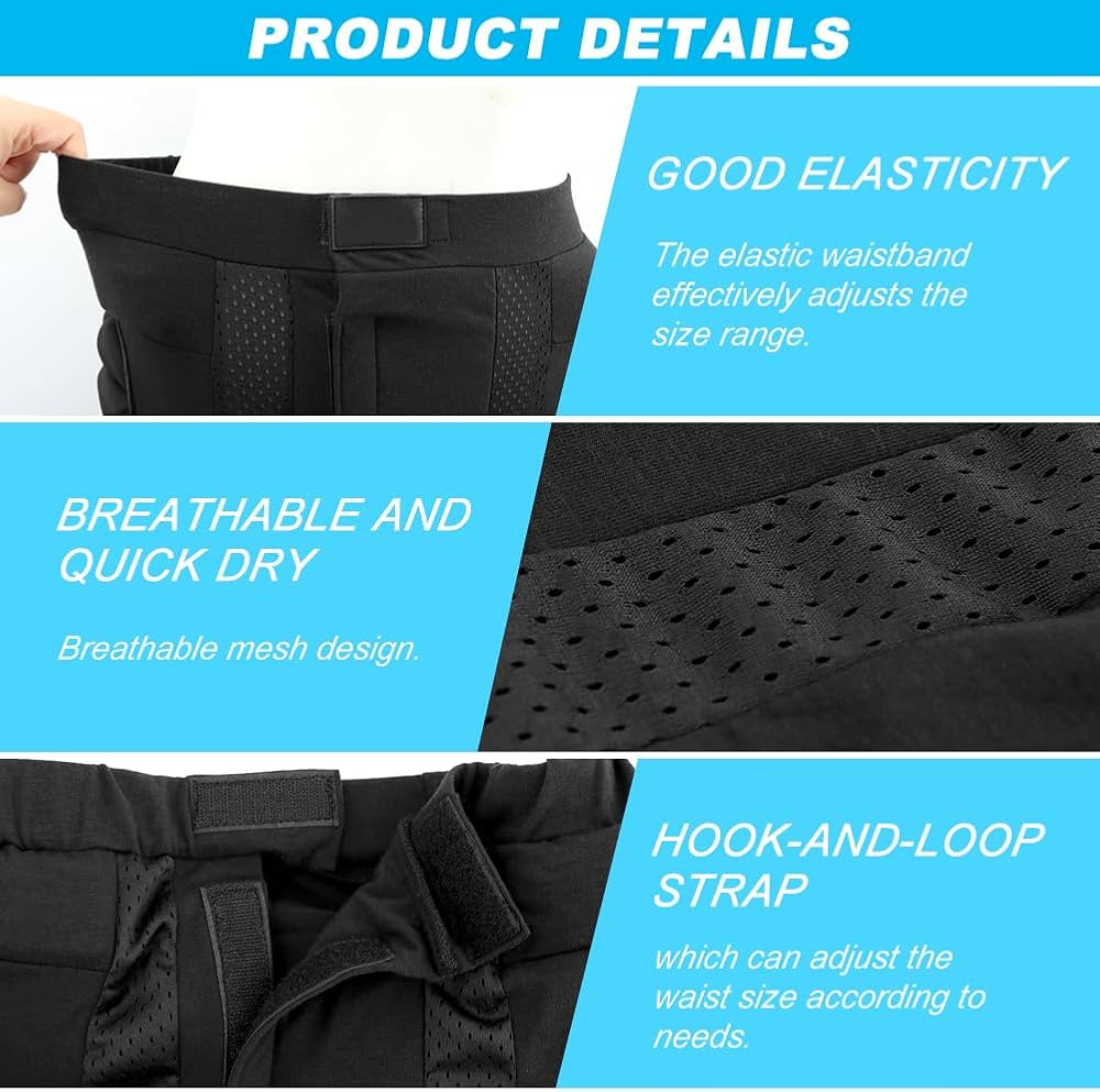 【SIZE OPTIONAL】The padded protective shorts have an elastic waist and hook-and-loop strap, which can adjust the waist size according to needs, and are easy to put on and take off. 3 sizes (M, L, XL) are available, please refer to the size chart to choose the right size.