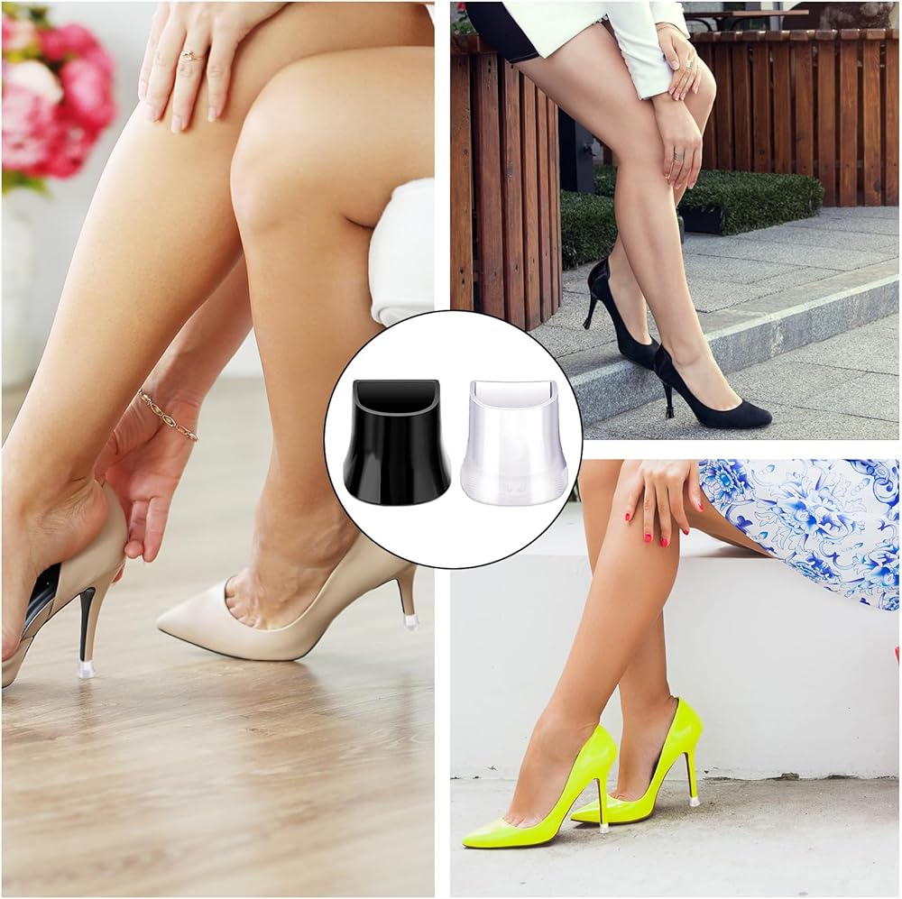 Warm Tips: Anti-Slip / Stop Clicking Noise / Walk on Grass / Save on Shoe Repairs / Prolong Shoe Life / Protect your Floor. If the installation feels too tight and difficult to install, you can soak heel protectors for shoes in hot water for a few minutes and wait until the shoe cover becomes soft before installing heel tips.