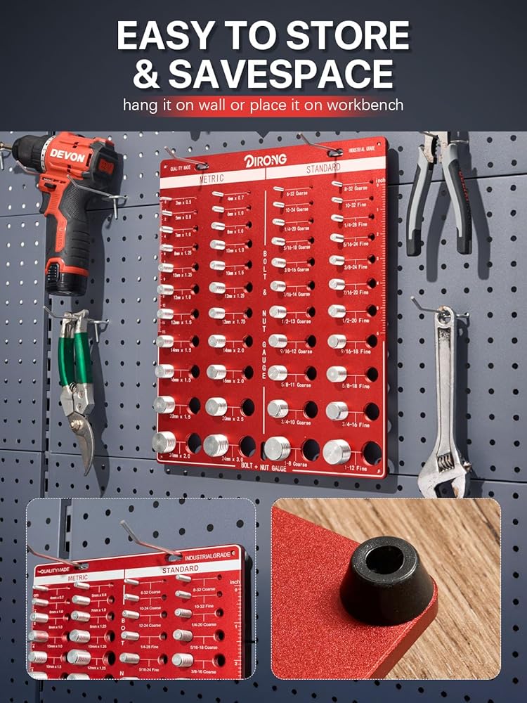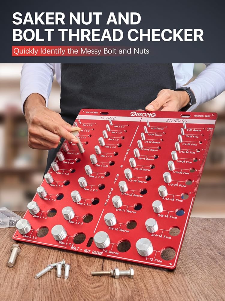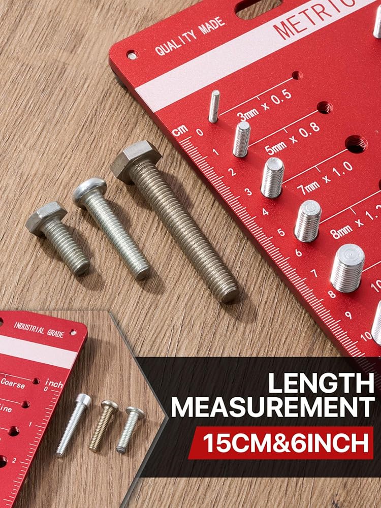 سهل الاستخدام: للحصول على تحديد سريع ودقيق لأحجام الخيوط في كل من الأنظمة المترية والقياسية، ما عليك سوى مطابقة الصمولة أو المسمار مع حجم الخيط المقابل على جهاز الفحص، باستخدام العلامات الدقيقة. بالإضافة إلى ذلك، فهو يشتمل على مساطر على كلا الجانبين (15 سم و6 بوصات) لسهولة قياس الطول. يعد جهاز فحص خيط الصمولة والمسمار أداة عملية وسهلة الاستخدام لتحديد حجم الخيط بشكل سلس ودقة القياس