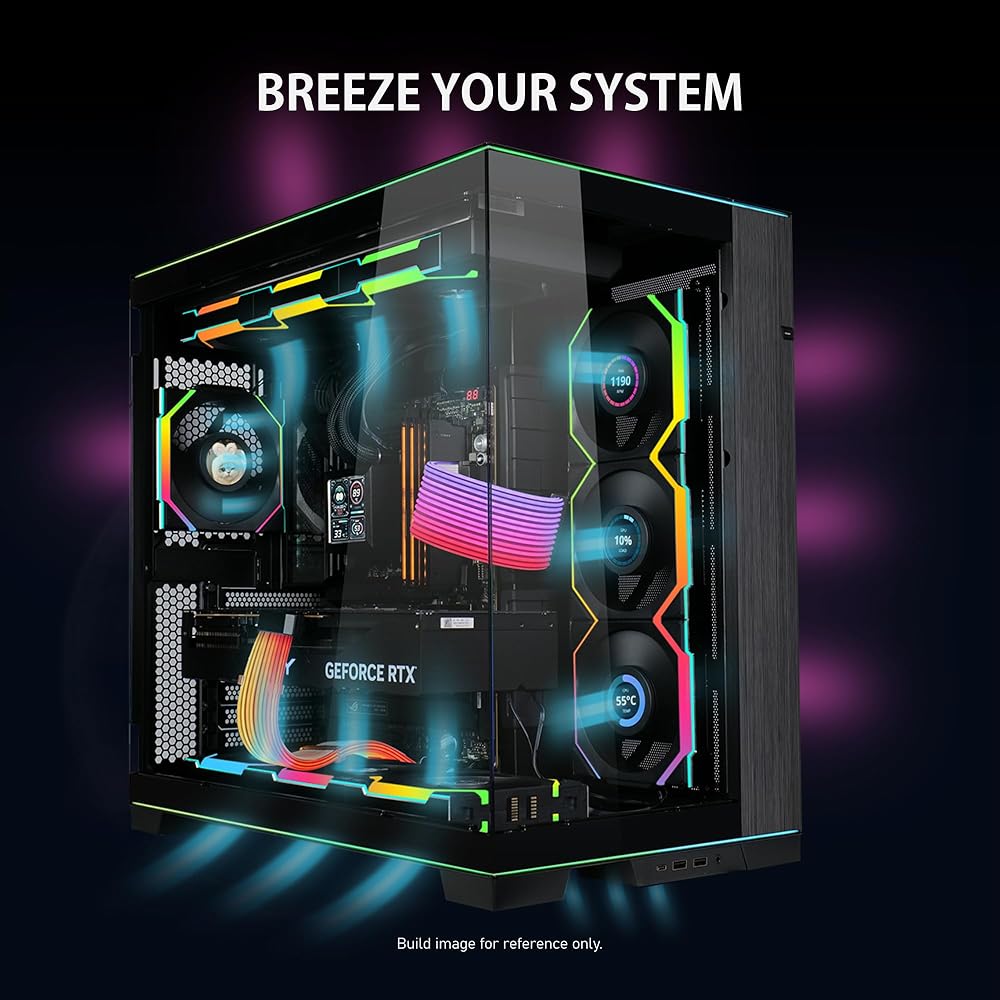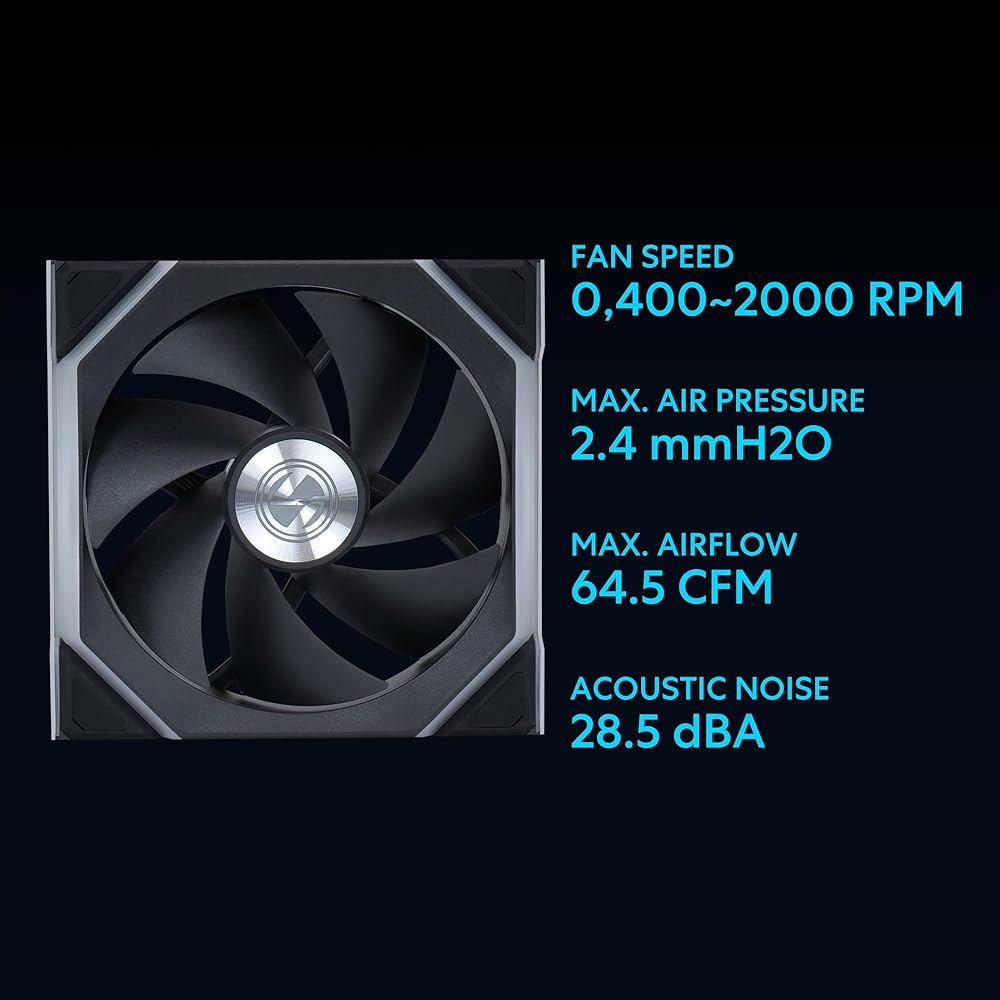 إعداد سريع للبرامج: يوفر برنامج L-Connect 3 القدرة على ضبط سرعات مختلفة للمروحة لكل مجموعة مراوح لتحسين السيناريوهات المختلفة. راقب درجة الحرارة وتحميل وحدة المعالجة المركزية ووحدة معالجة الرسومات لديك، بالإضافة إلى سرعة المروحة، على الفور باستخدام لوحات معلومات مراقبة الأجهزة المدمجة على الشاشة. تساعد المروحة على توفير المزيد من تدفق الهواء والضغط الثابت.