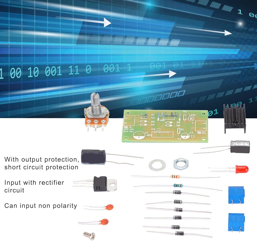 مدخل غير قطبي - تحتوي مجموعة إمداد الطاقة المنظمة القابلة للتعديل LM317 على مدخل دائرة مقوم ويمكن إدخالها بدون قطبية