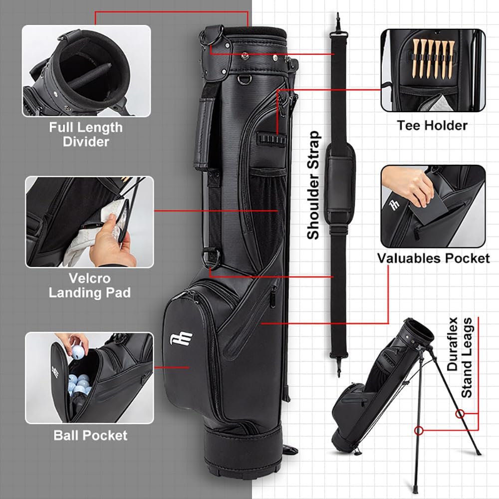 This Players Pencil Stand Bag is the perfect option for those days you want to carry light. Our Half bag fits up to 7 clubs comfortable and comes with a sturdy stand for easy use on the course or at the range;