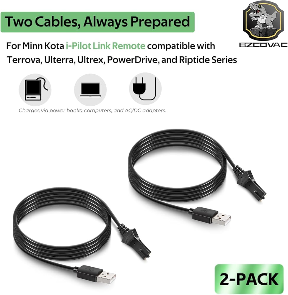 2 حزمة، كابل شحن i-Pilot Link 1866460 لجميع أجهزة التحكم عن بعد Minn Kota i-Pilot Link، بما في ذلك النماذج التي تدعم تقنية Bluetooth والنماذج القديمة، أسود