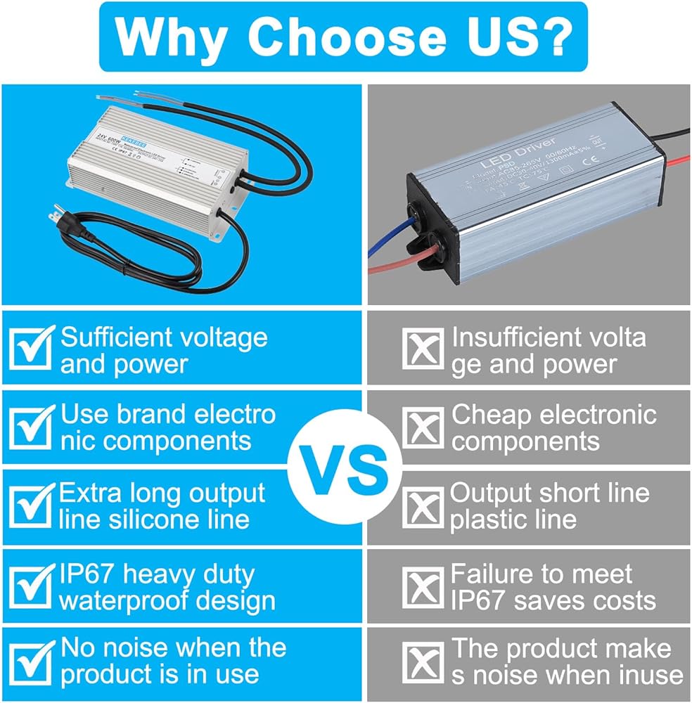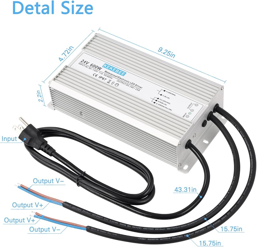 It is particularly worth mentioning that this LED driver of KEKEBEE adopts IP67 waterproof design, which means that it can work continuously for 30 minutes at a depth of 1 meter underwater without being affected, which is very suitable for outdoor or humid environment applications. Whether it is a stormy night, or a damp basement or bathroom, it can ensure the stable operation of LED lamps without worrying about short circuits or failures caused by moisture or water splashes.