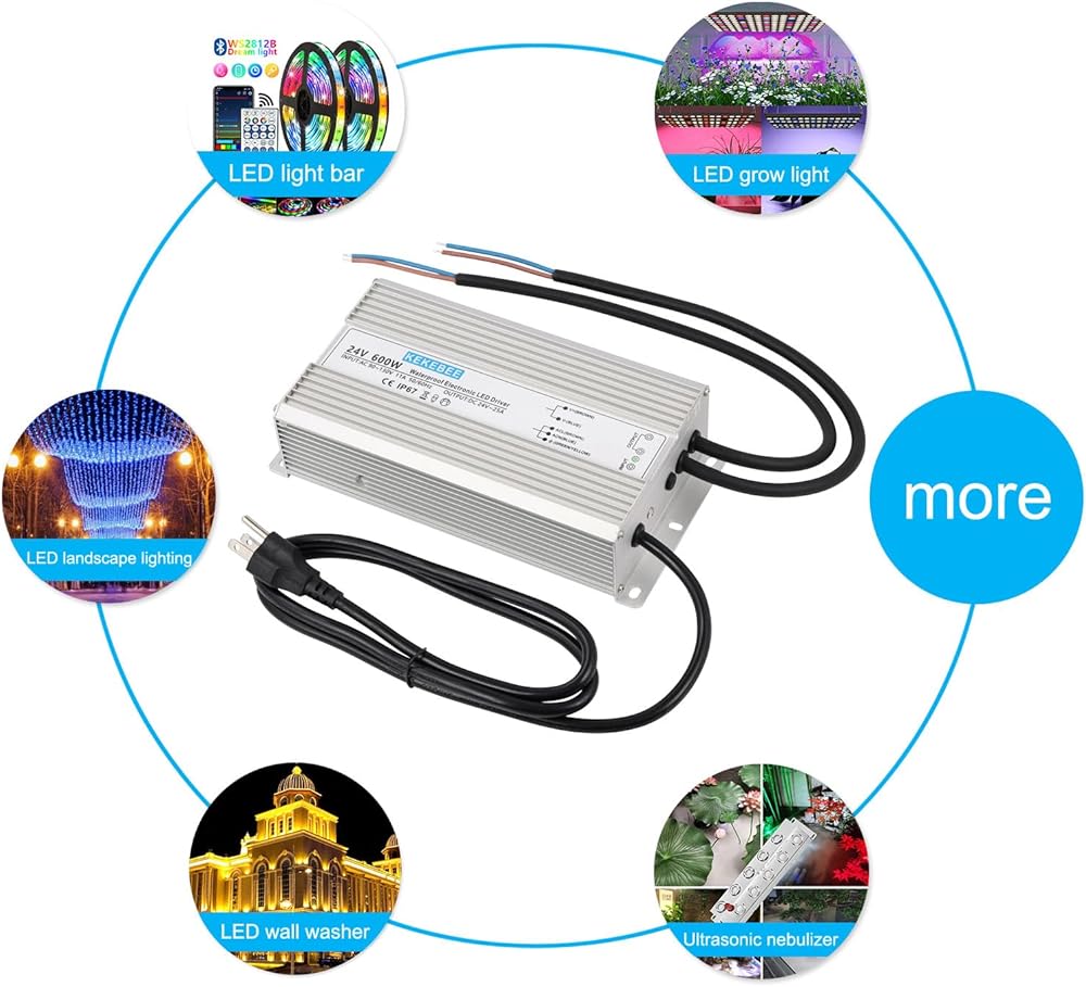 KEKEBEE 24V800W LED driver, using advanced power conversion technology, can easily convert 110V/120V AC into stable 24V DC, with a maximum output current of up to 33.3A, meeting the power supply needs of high-power LED lamps. Whether it is LED light strips for home decoration, LED street lights and wall washers in commercial lighting, or even ultrasonic atomizers and camera computer engineering in the industrial field, this driver can provide stable and sufficient power support to ensure that every lamp can illuminate every corner in the best state.