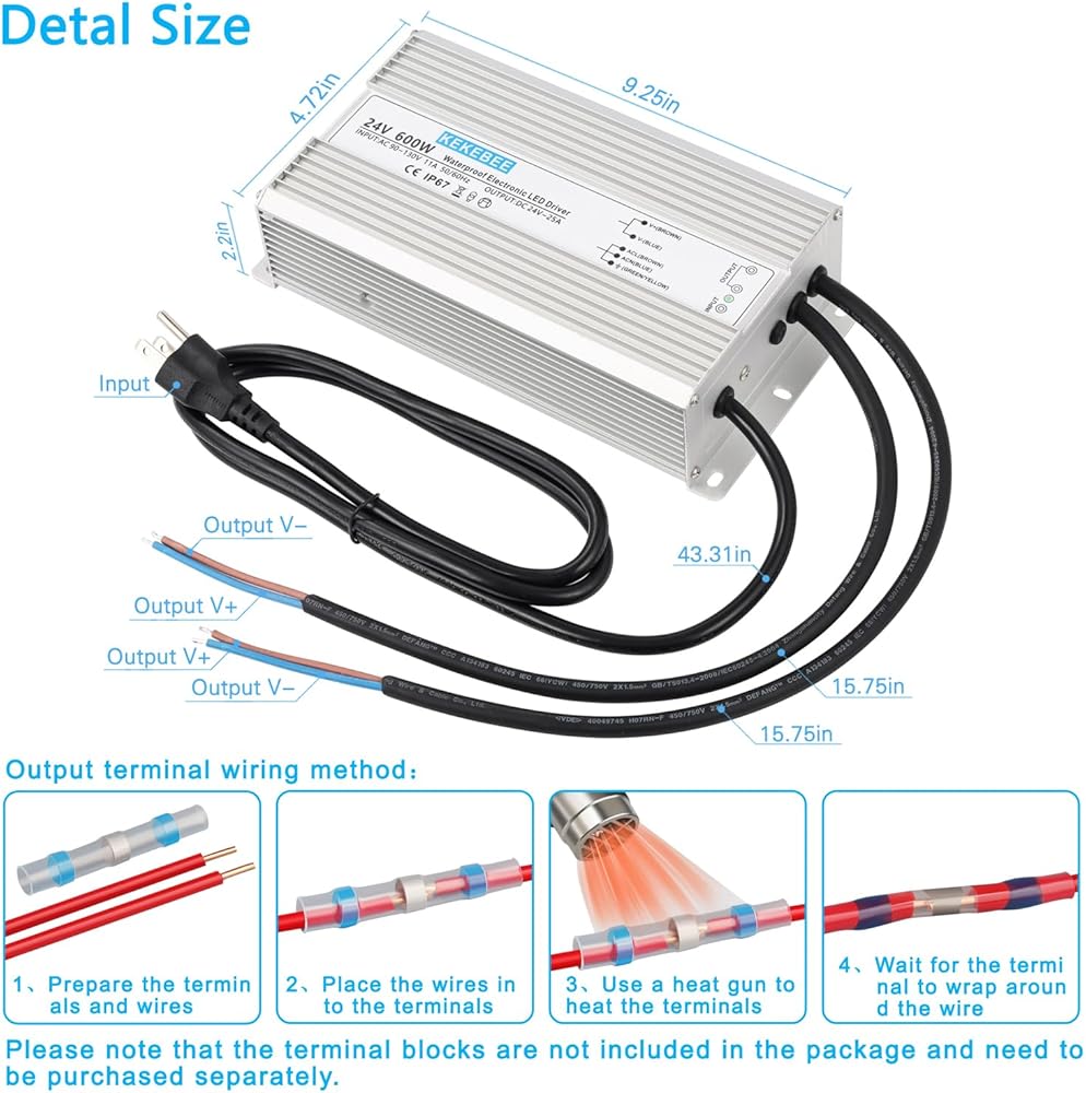 KEKEBEE LED driver: 24V800W waterproof transformer, input AC 90-120V, 50-60Hz, output DC: 24V800W waterproof power supply. Light up your new realm of LED lighting In the ever-changing field of LED lighting, an efficient, safe and reliable LED driver is the key to ensuring the stable operation of the lighting system. KEKEBEE, as a leader in LED lighting solutions, has recently launched a 24V800W waterproof power supply, which has won wide acclaim in the market for its excellent performance and thoughtful design. This converter is not only suitable for various indoor and outdoor LED lighting fixtures, but also provides users with unprecedented peace of mind and convenience for their lighting experience with its IP67-level waterproof performance and multiple safety protection mechanisms.
